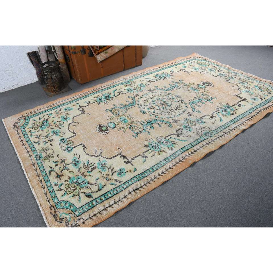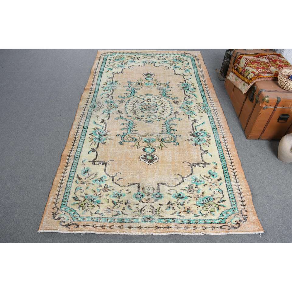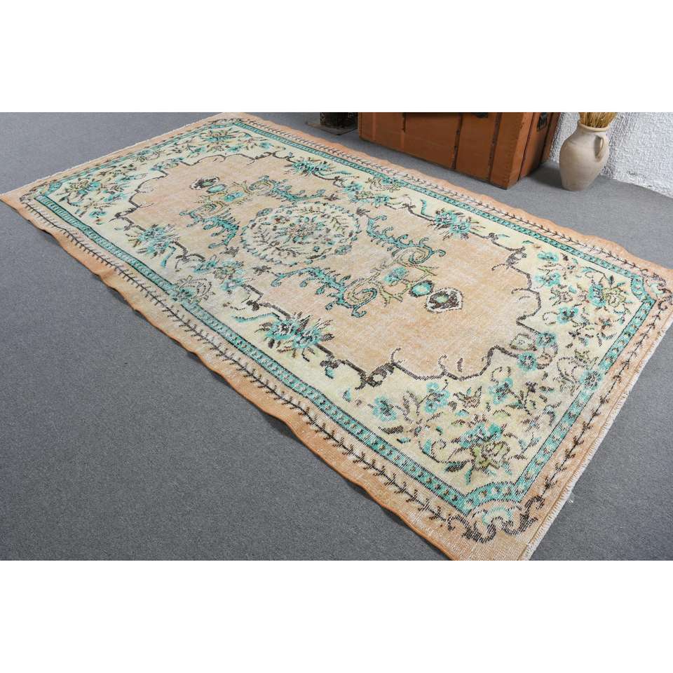 Alfombra de 5.3x9.4 pies, Alfombra Vintage, Alfombra Oriental de Lana Azul Turca