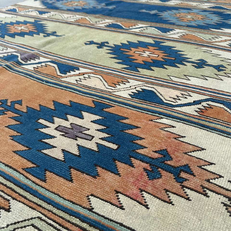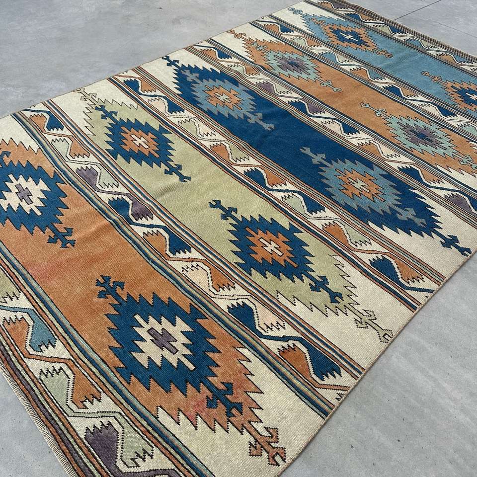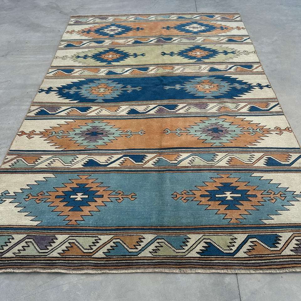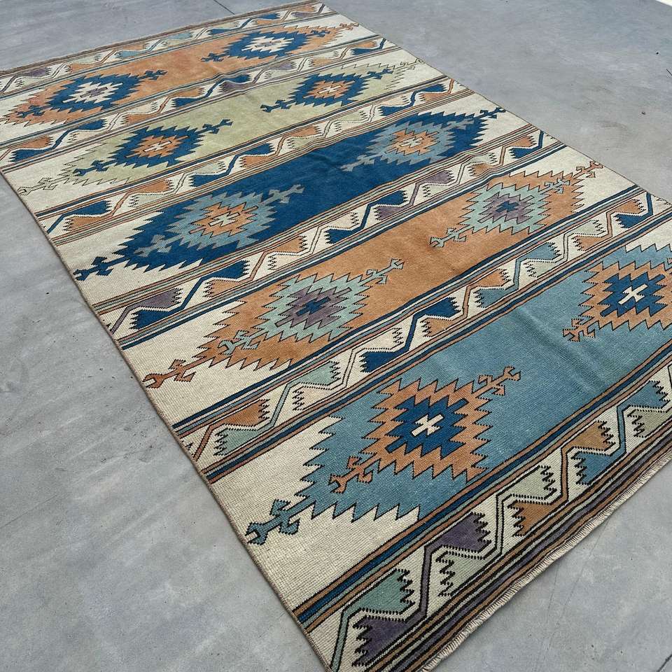 Alfombra de 5.4x8.3 pies, Alfombra Turca Vintage Grande, Alfombra de Lana Azul