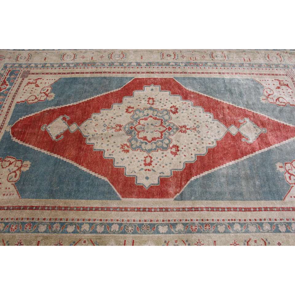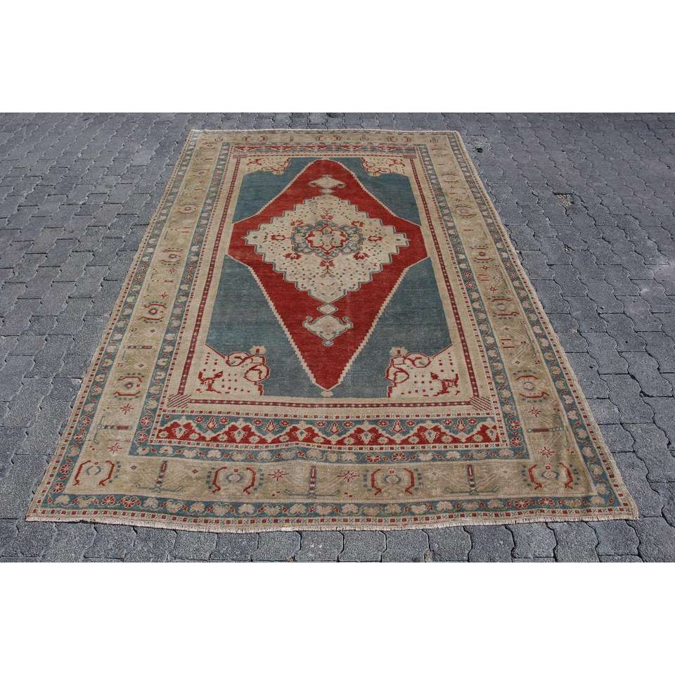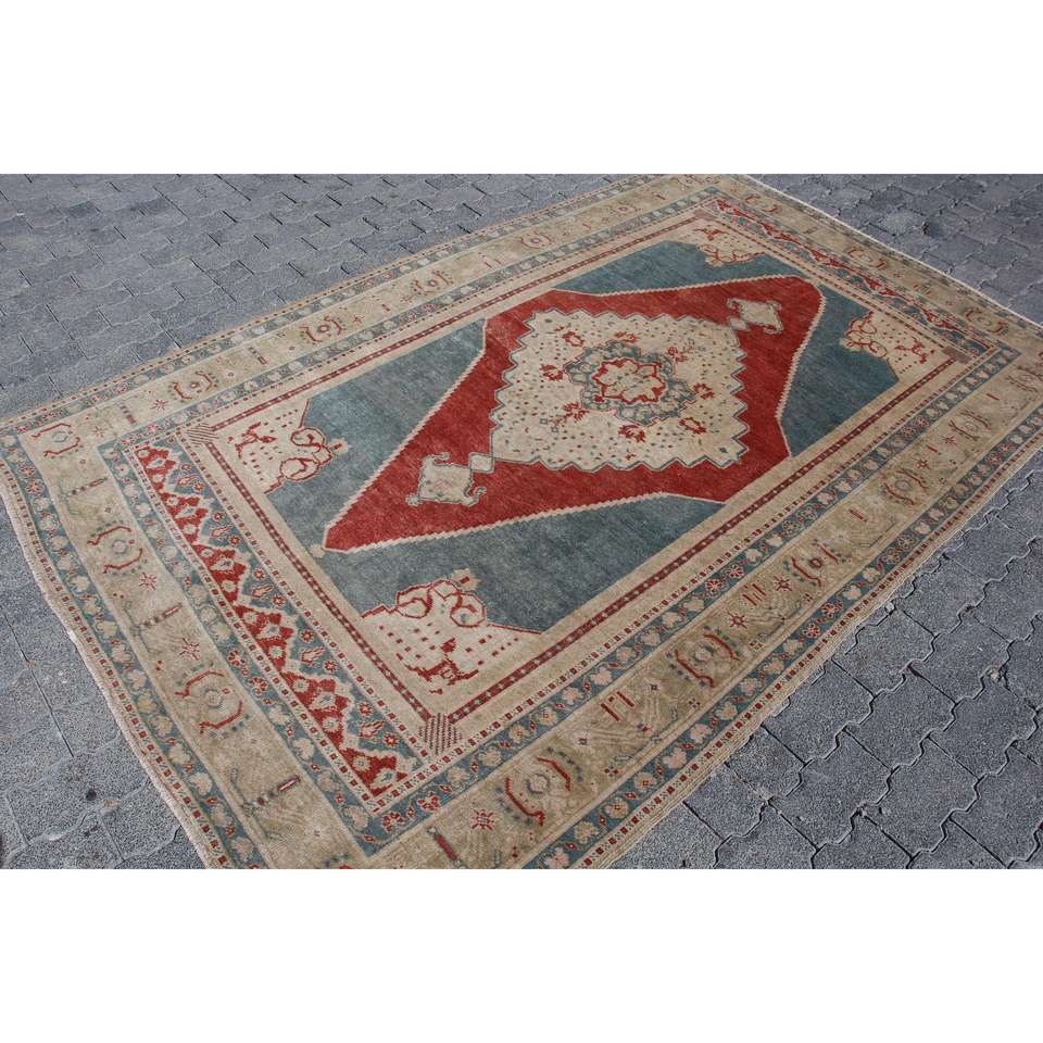 Alfombra Turca de 5.4x8.4 pies, Alfombra Vintage Grande, Alfombra Azul Camuflaje
