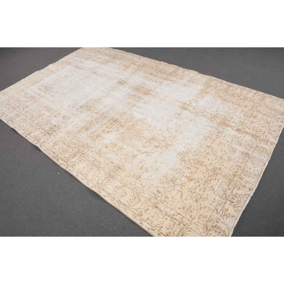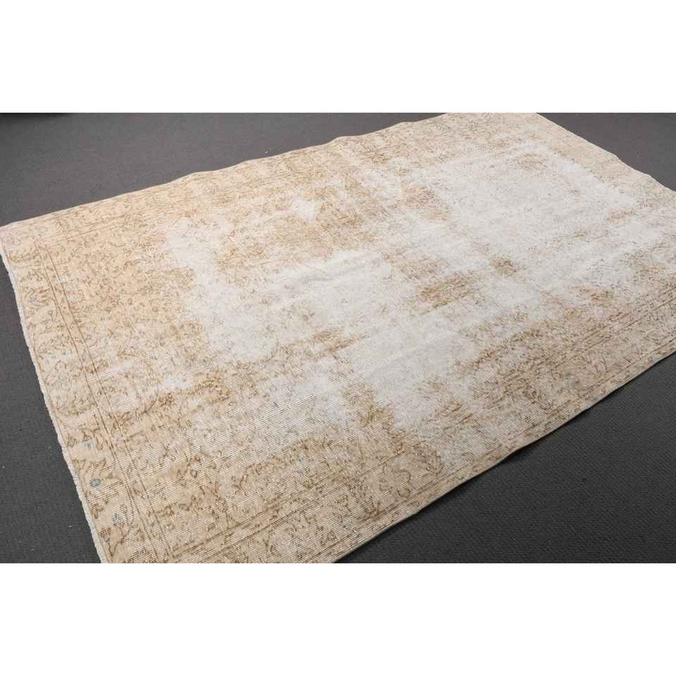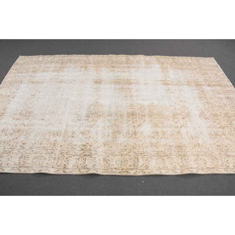 Alfombra Turca de 5.4x8.6 pies, Alfombra, Alfombra Ikat Blanca de Lana