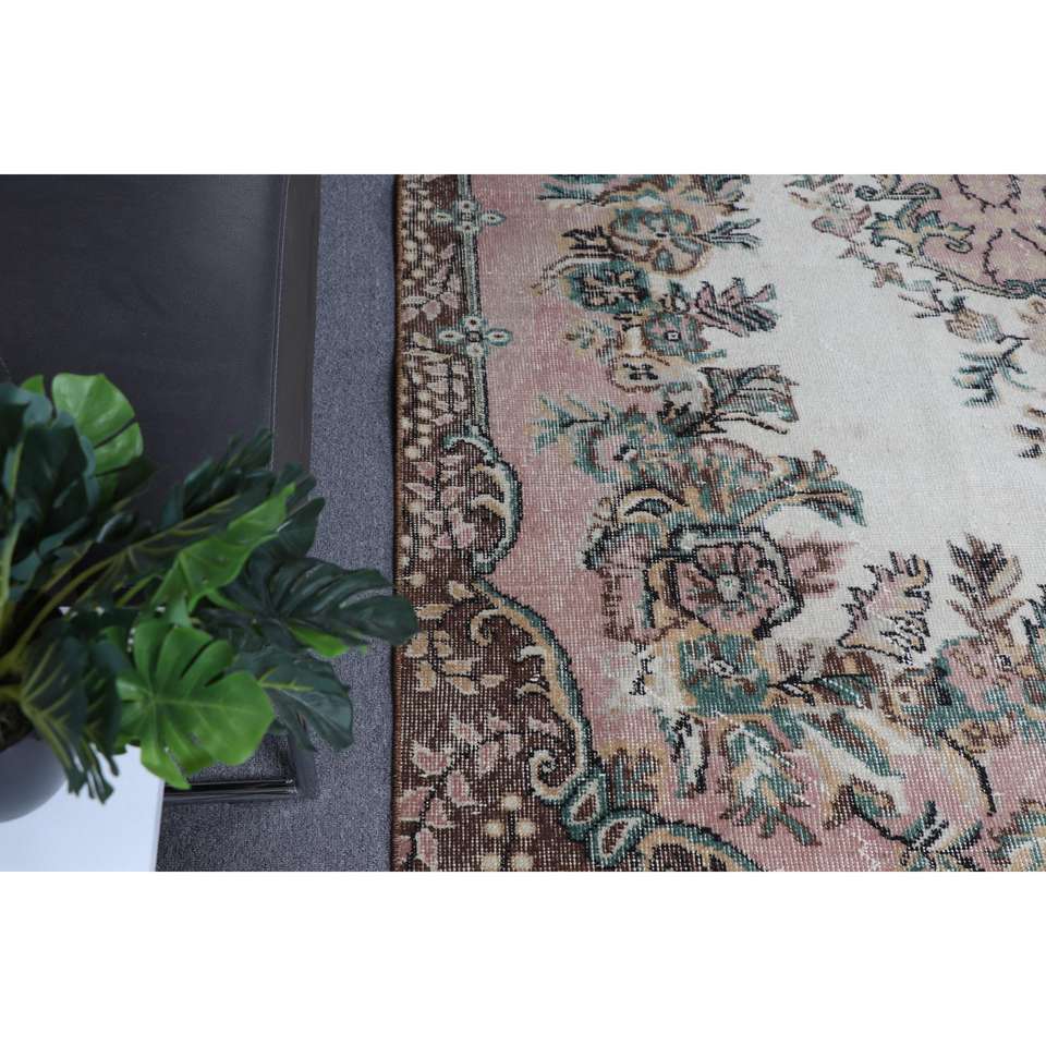 Alfombra Turca de 5.4x9.4 pies, Alfombra Grande Vintage, Alfombra de Lana con Bordes Marrones y Rosas