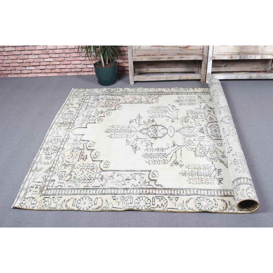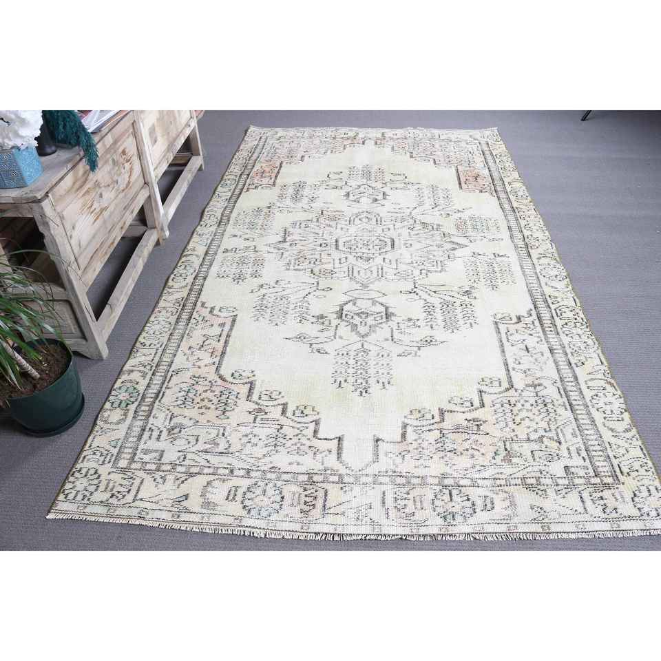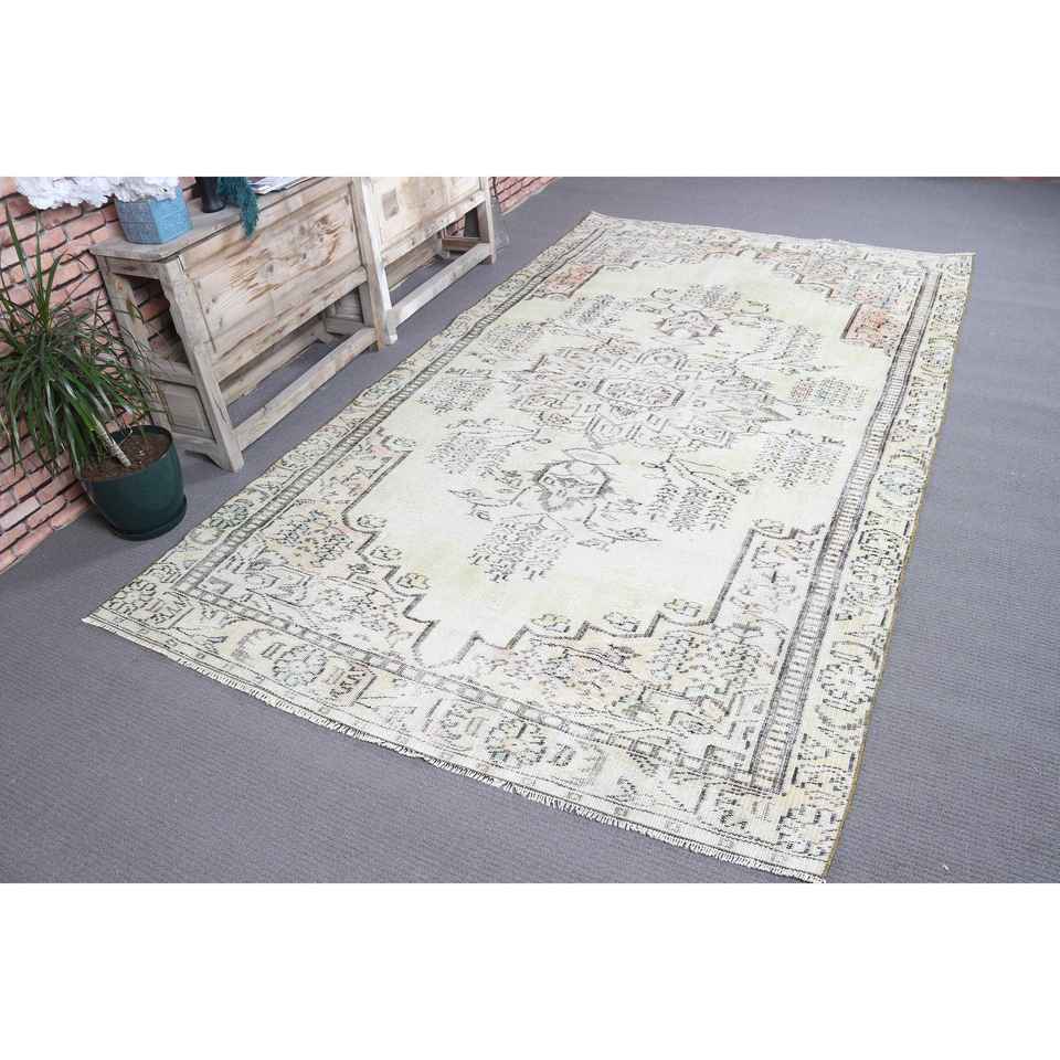 Alfombra Vintage Grande de 5.4x9 pies, Alfombra Turca de Lana Ombré en Blanco y Gris