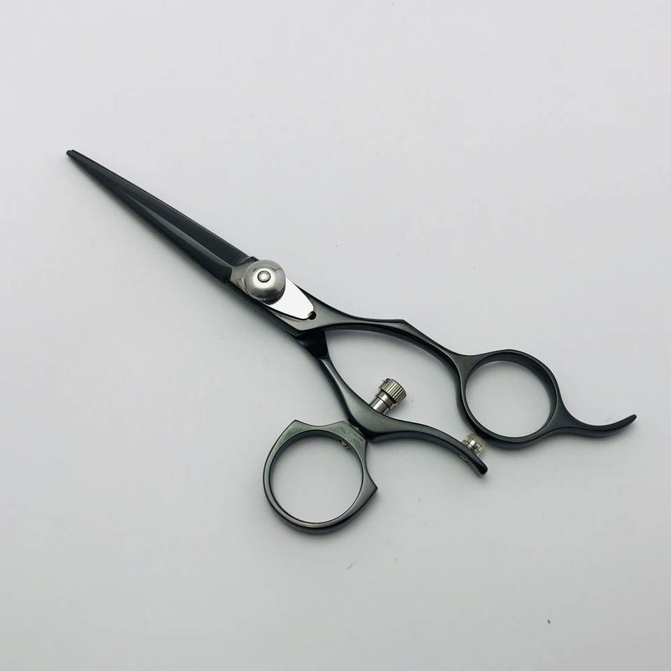 Tijeras de Peluquería Profesionales de Titanio Negro de 5.5 Pulgadas con Mango Giratorio de 360 Grados para Peluquería y Salón