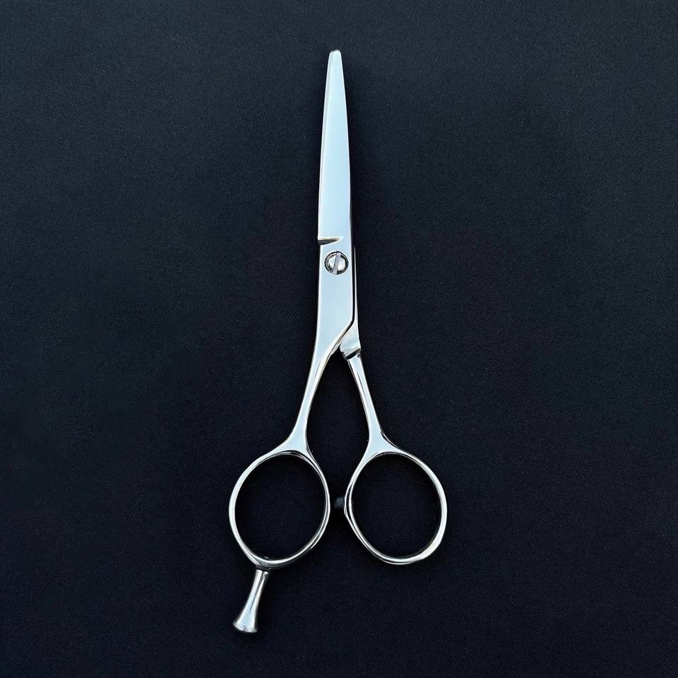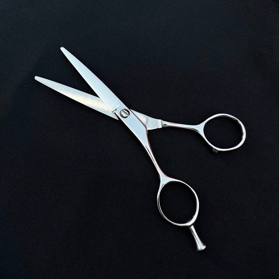 Tijeras de Peluquería Profesionales de Acero Inoxidable Plateado de 5.5 Pulgadas, Rectas, para Zurdos, con Hoja Afilada y Recubrimiento de Titanio