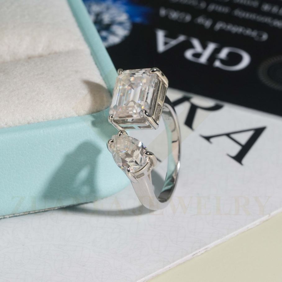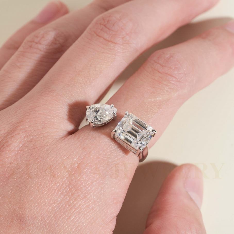 Anillo de Compromiso de Plata 925 con Baño de Oro Blanco de 18k y Moissanita de Corte Esmeralda y Pera de 5.5CT, 2 Diamantes de Moissanita