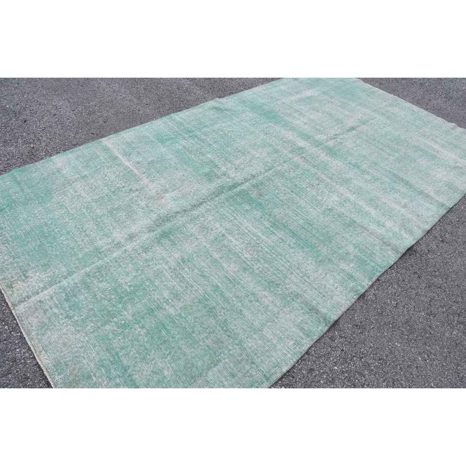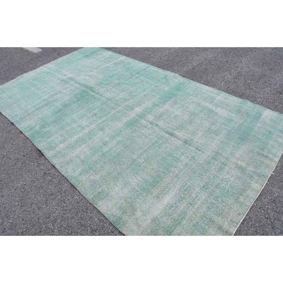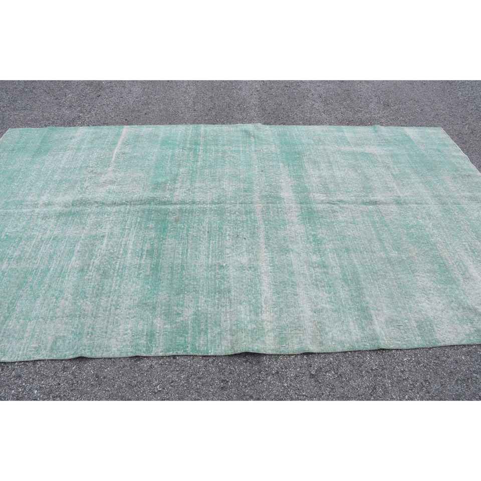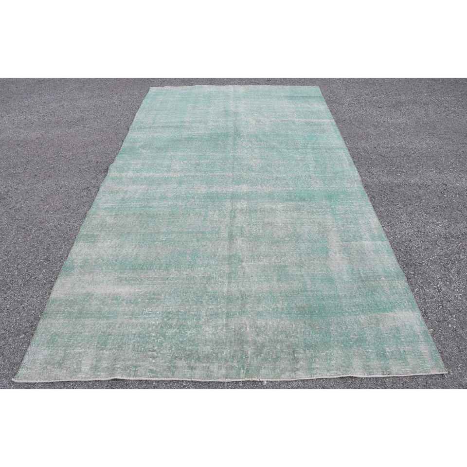 Alfombra Turca de 5.5x10.1 pies, Alfombra Grande Vintage, Alfombra Abstracta Verde y Blanca