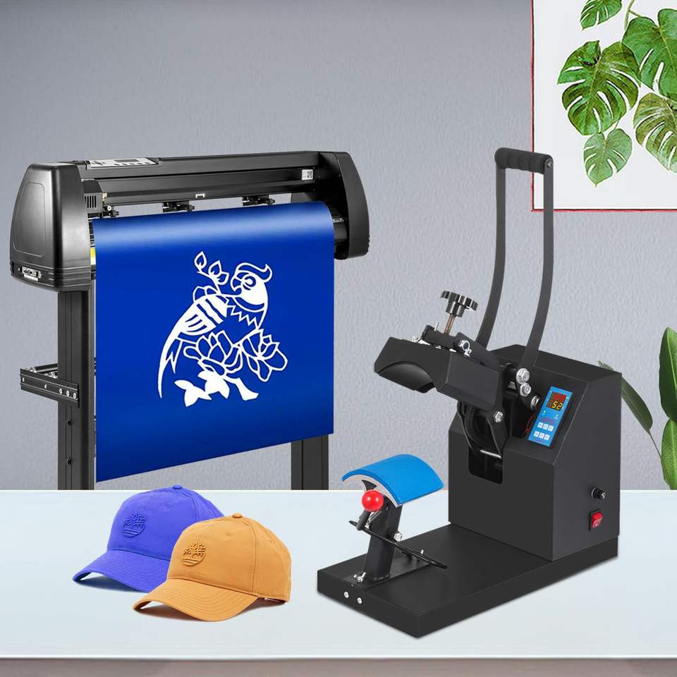 Máquina de prensado térmico para gorras de 5.5x3.5 pulgadas con cortador de vinilo de 53 pulgadas y soporte de suelo incluido