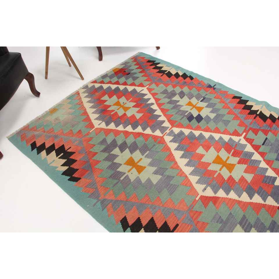 Alfombra Vintage de 5.5x9.2 pies, Alfombra Turca Grande, Alfombra Oriental Roja y Azul