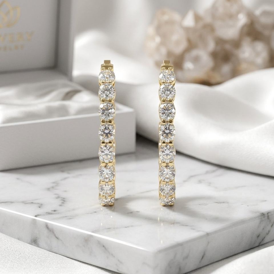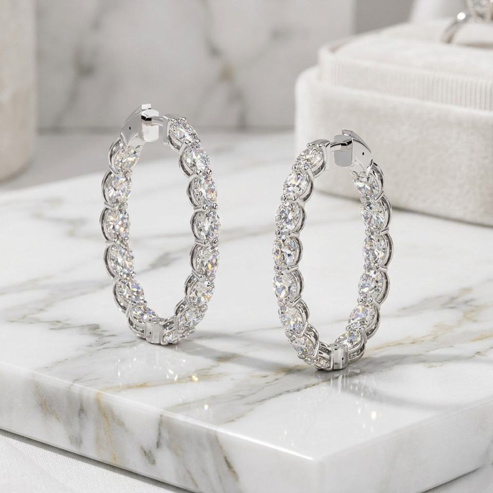 Pendientes de Aro con Diamantes en Forma Ovalada de 5.60CTW