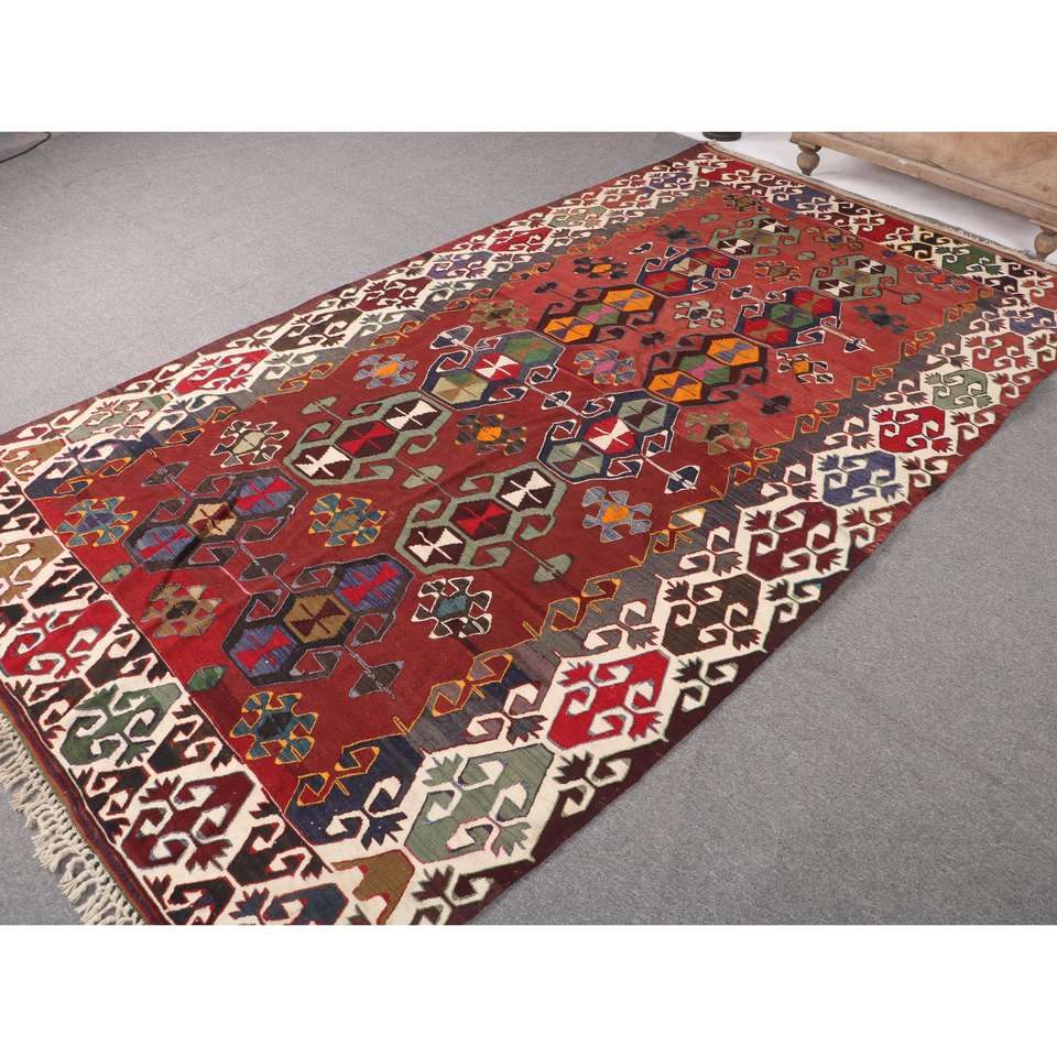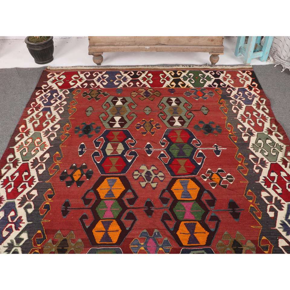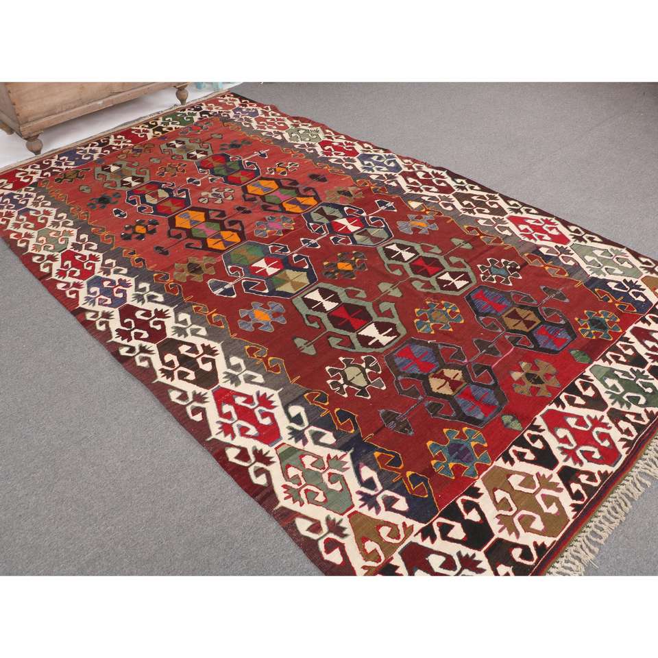 Alfombra de 5.6x10.1 pies, Alfombra Turca Vintage Grande, Alfombra de Lana Roja Kilim