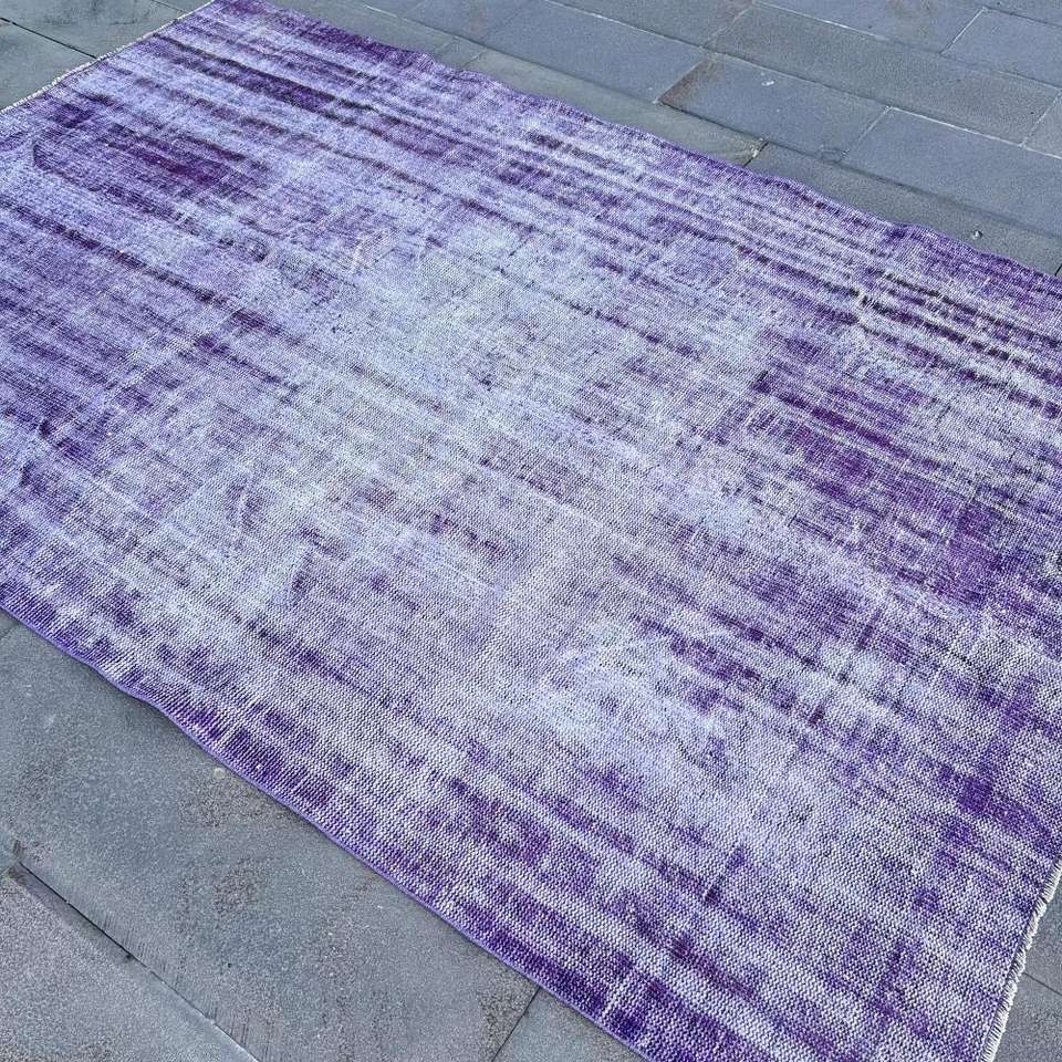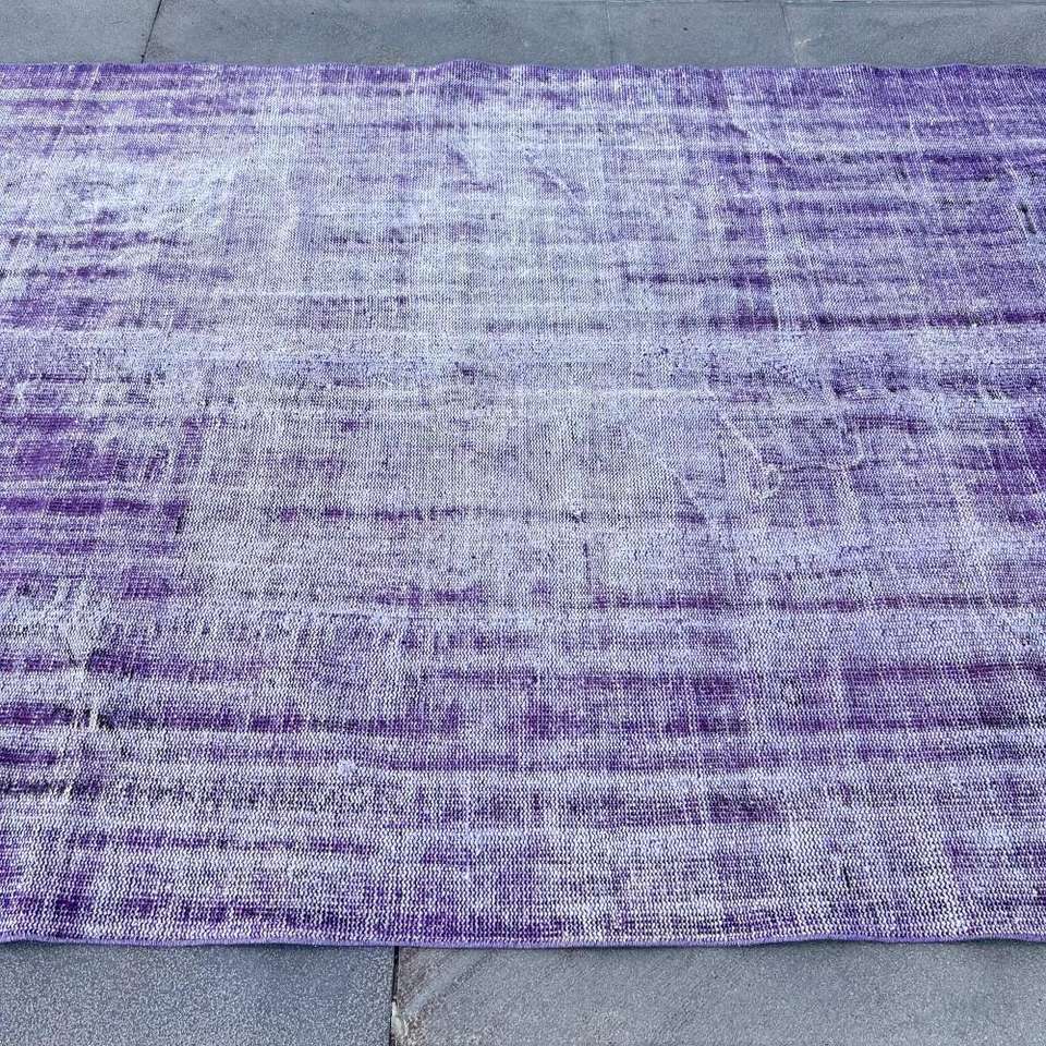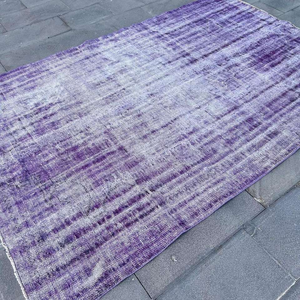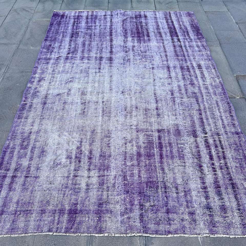Alfombra Turca de 5.6x8.8 pies, Alfombra Vintage, Alfombra a Rayas Morada y Gris