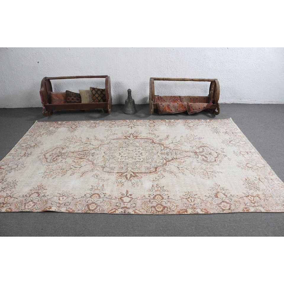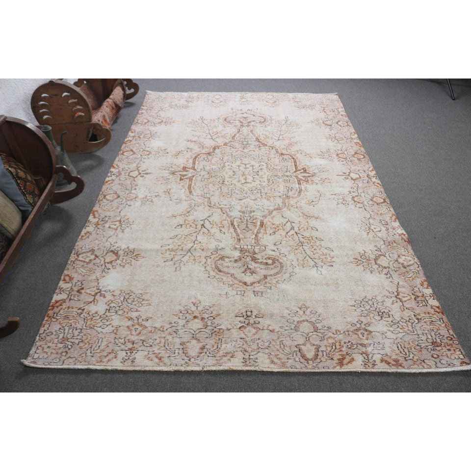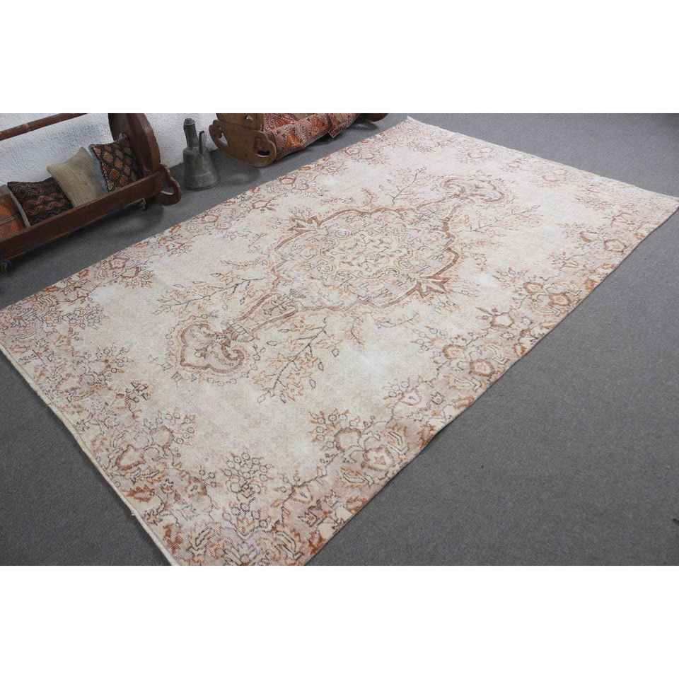 Alfombra Turca de 5.6x9.1 pies, Alfombra Grande Vintage, Alfombra de Lana con Puntos Blancos sobre Fondo Marrón