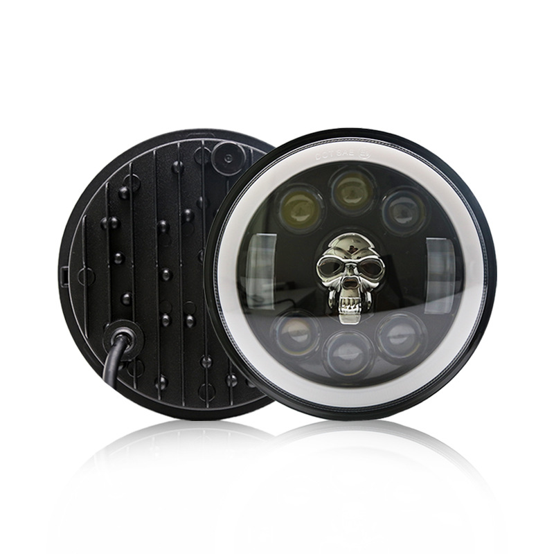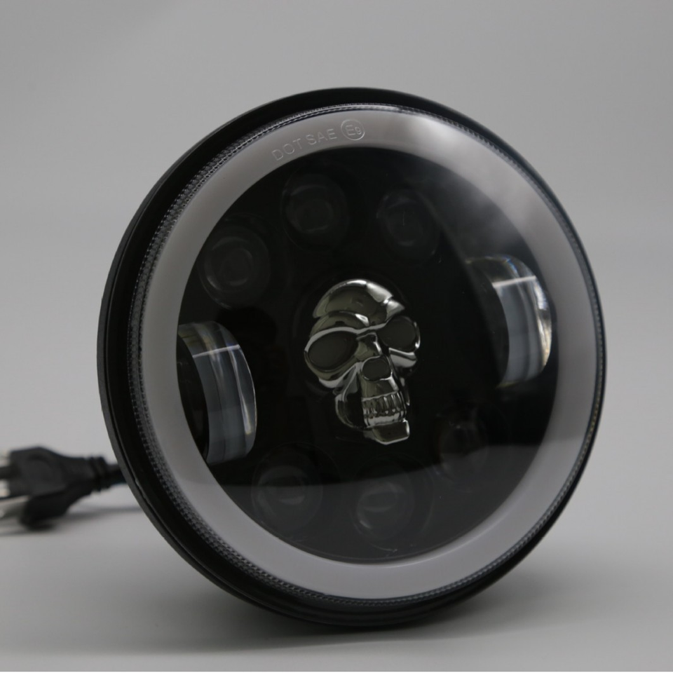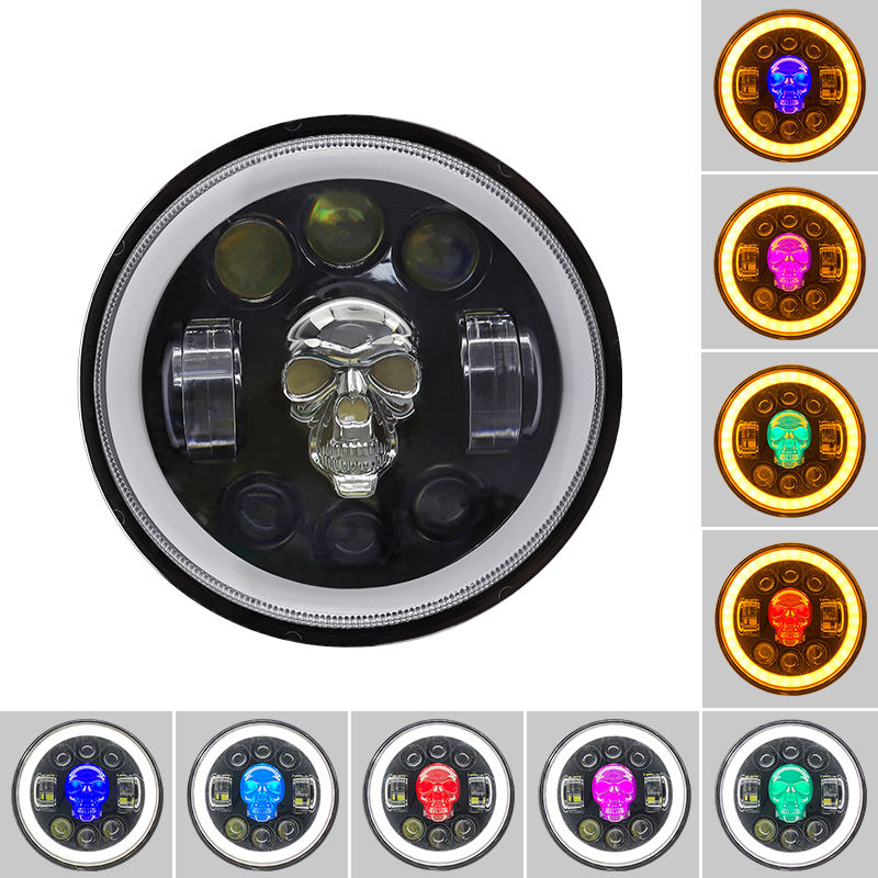 Faro de Moto de calavera de colores de 5,75 pulgadas H4 ojos de demonio pavimentación luces de calle LED faros de luz cercana y lejana para