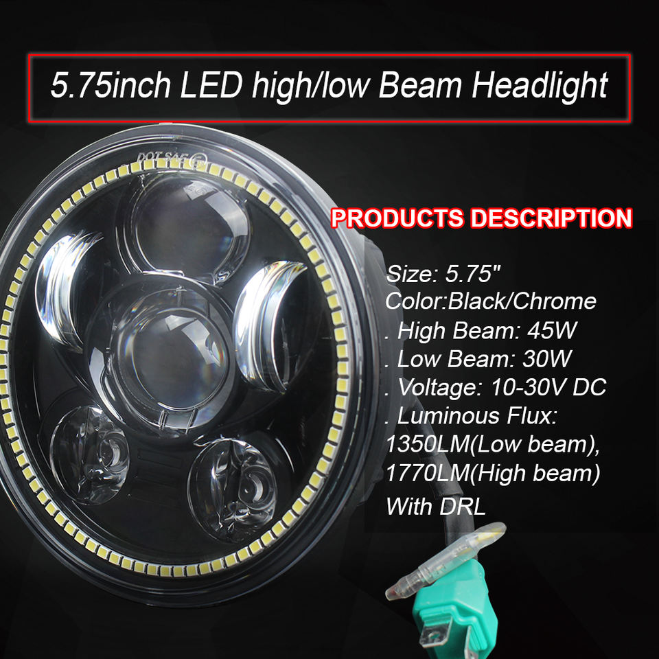 Faro de 5,75 pulgadas, haz Alto y Bajo + DRL Compatible para motocicleta Harley Honda VTX 1800 VTX 1300
