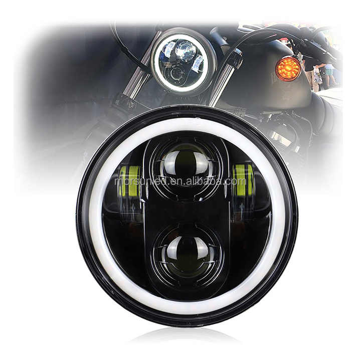 Faro LED de 5.75 Pulgadas para Accesorios Harley Davidson Sportster 1200 883 Dyna Softail, Faro Redondo para Motocicleta con Anillo Halo