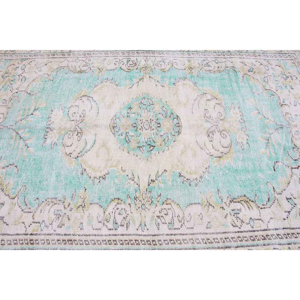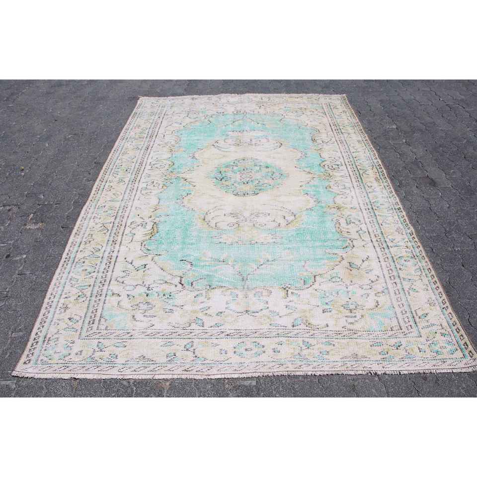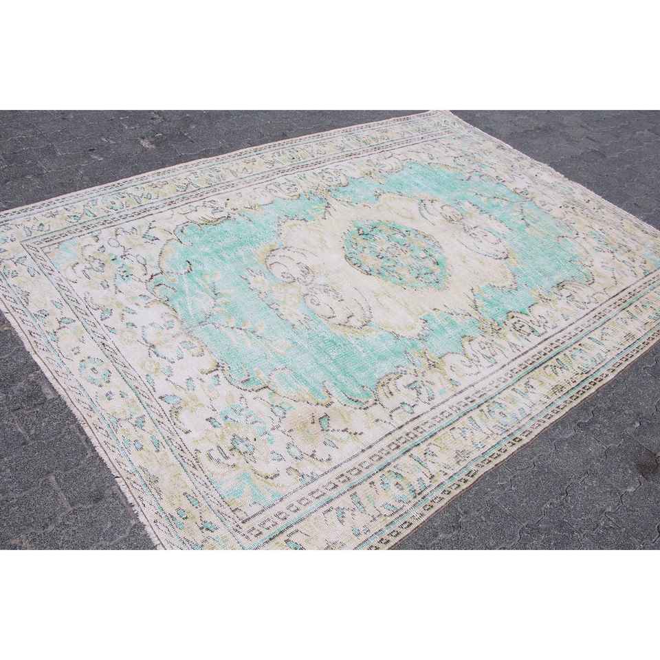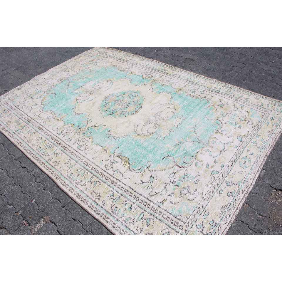 Alfombra de 5.7x8.3 pies, Alfombra Turca, Alfombra Vintage de Lana Azul con Rayas