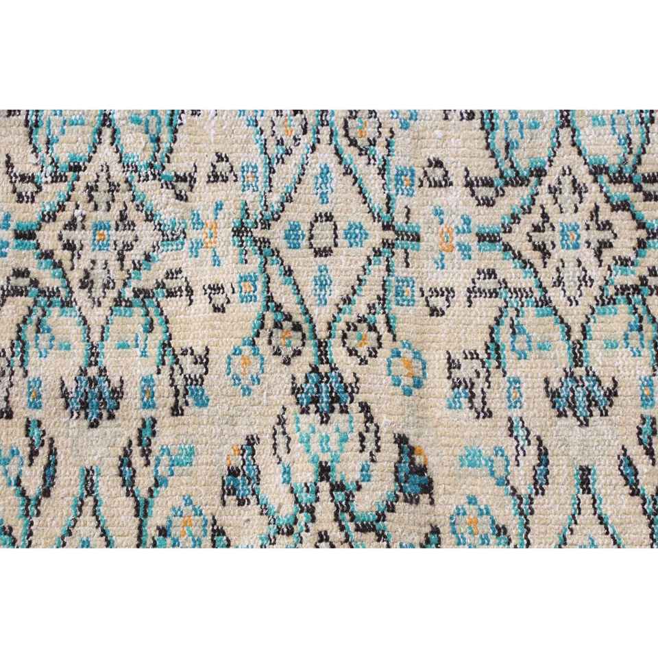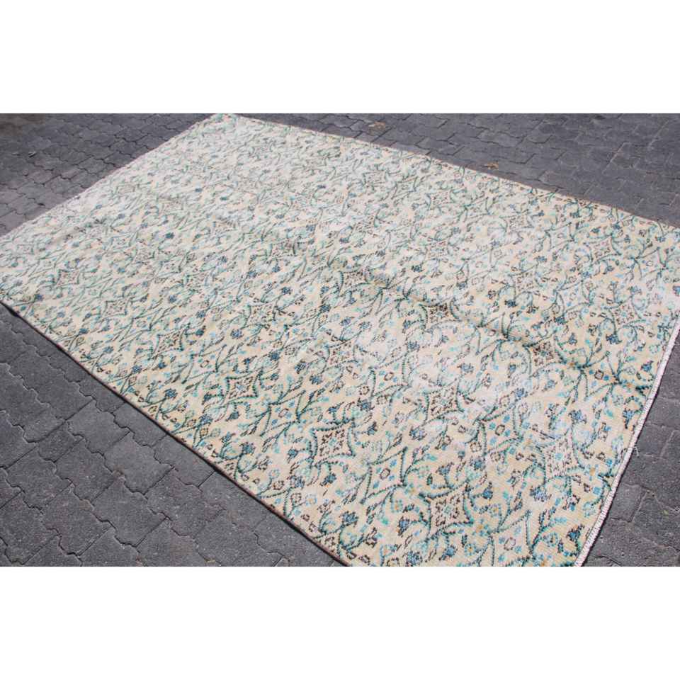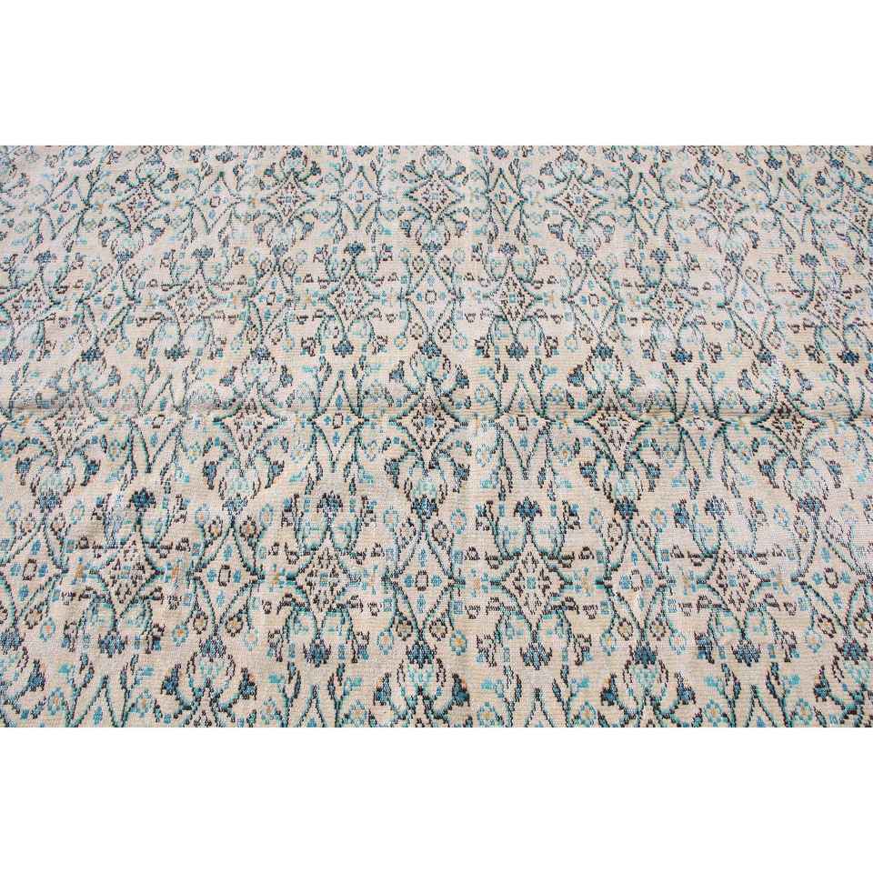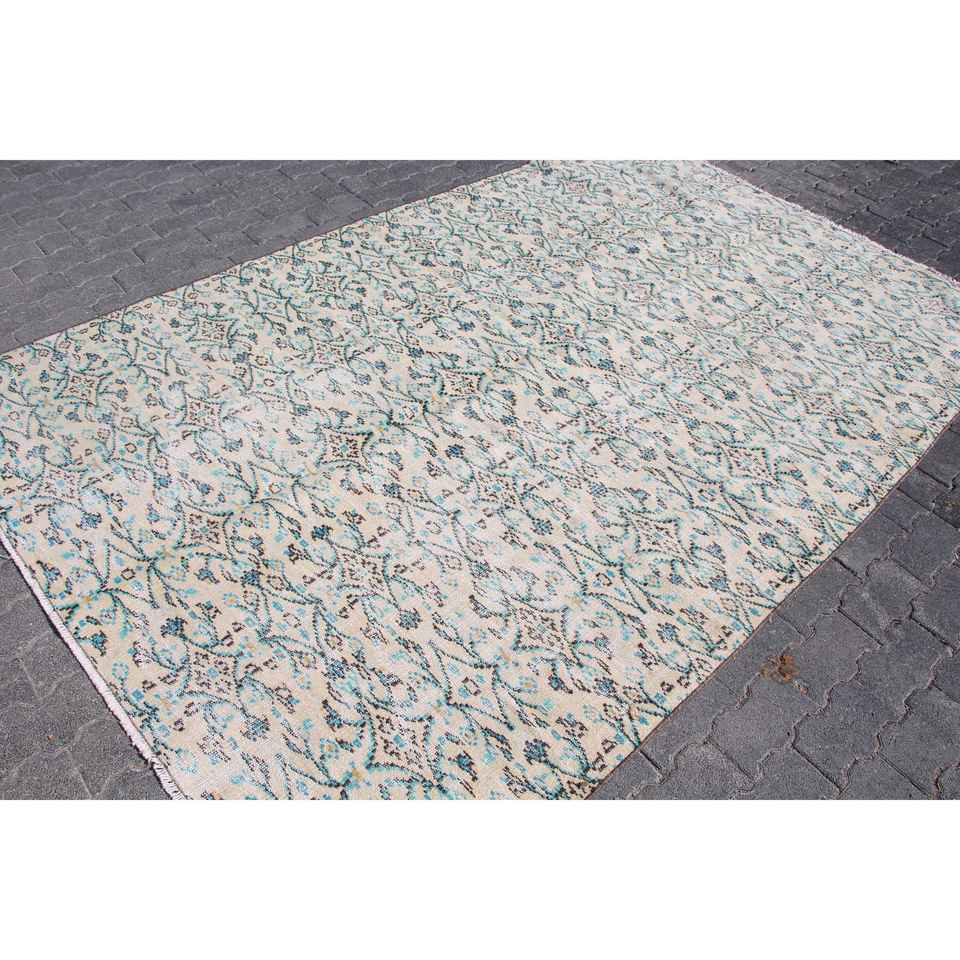 Alfombra Turca de 5.7x8.8 pies, Alfombra Grande Vintage, Alfombra de Lana con Diseño Floral Azul y Blanco