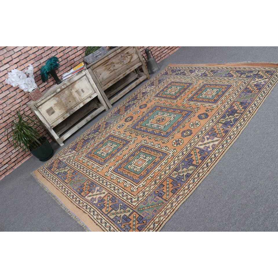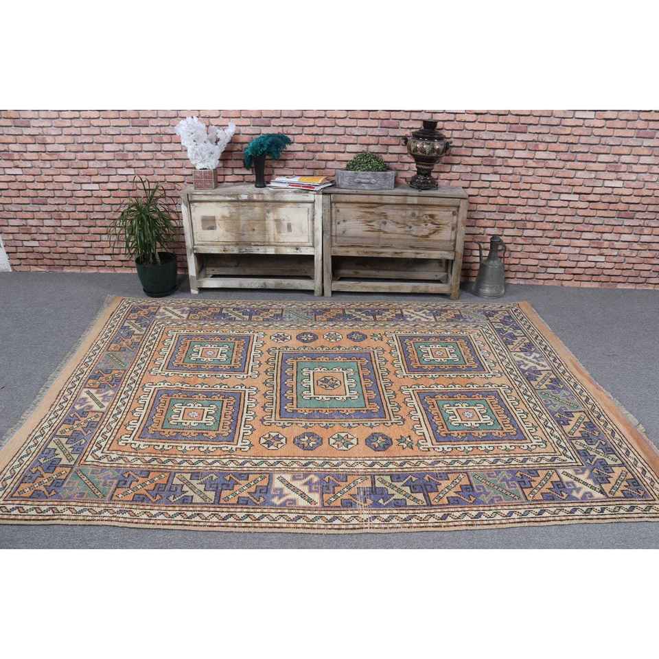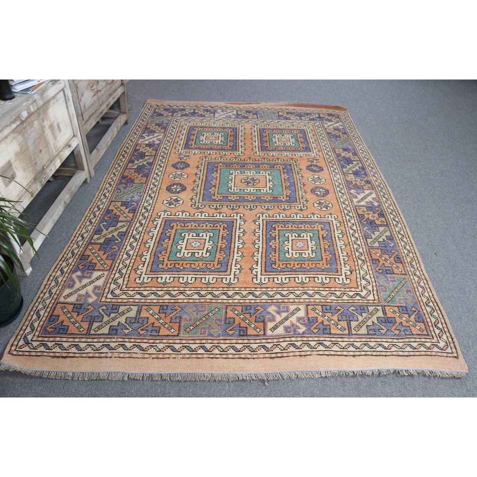 Alfombra de 5.7x8 pies, Alfombra Vintage Grande, Alfombra Azul Ombré