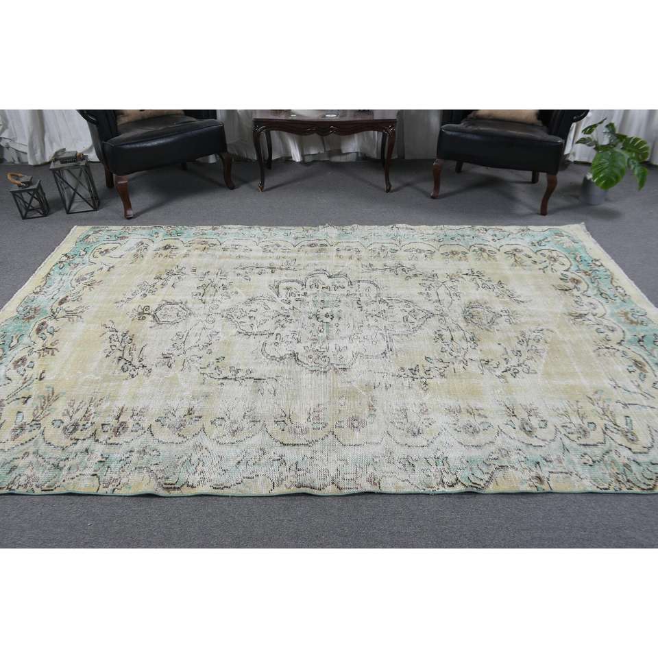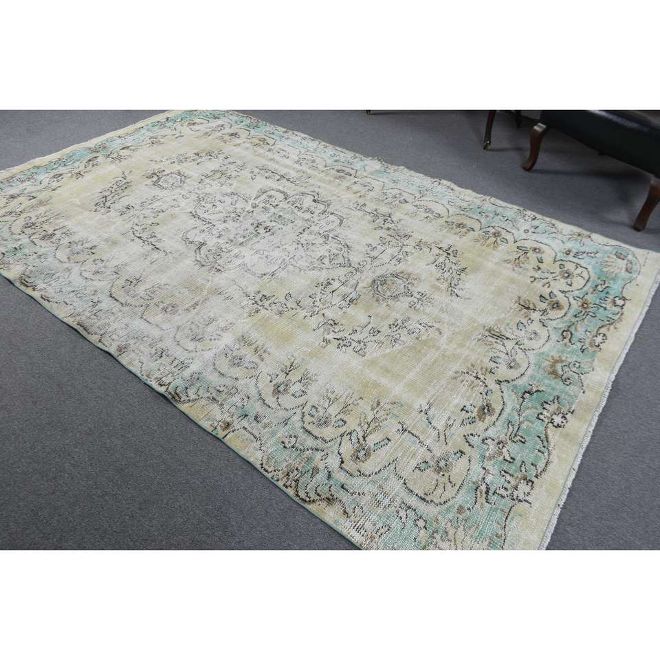 Alfombra de 5.8x9.5 pies, Alfombra Turca Vintage, Alfombra de Camuflaje Azul y Blanca