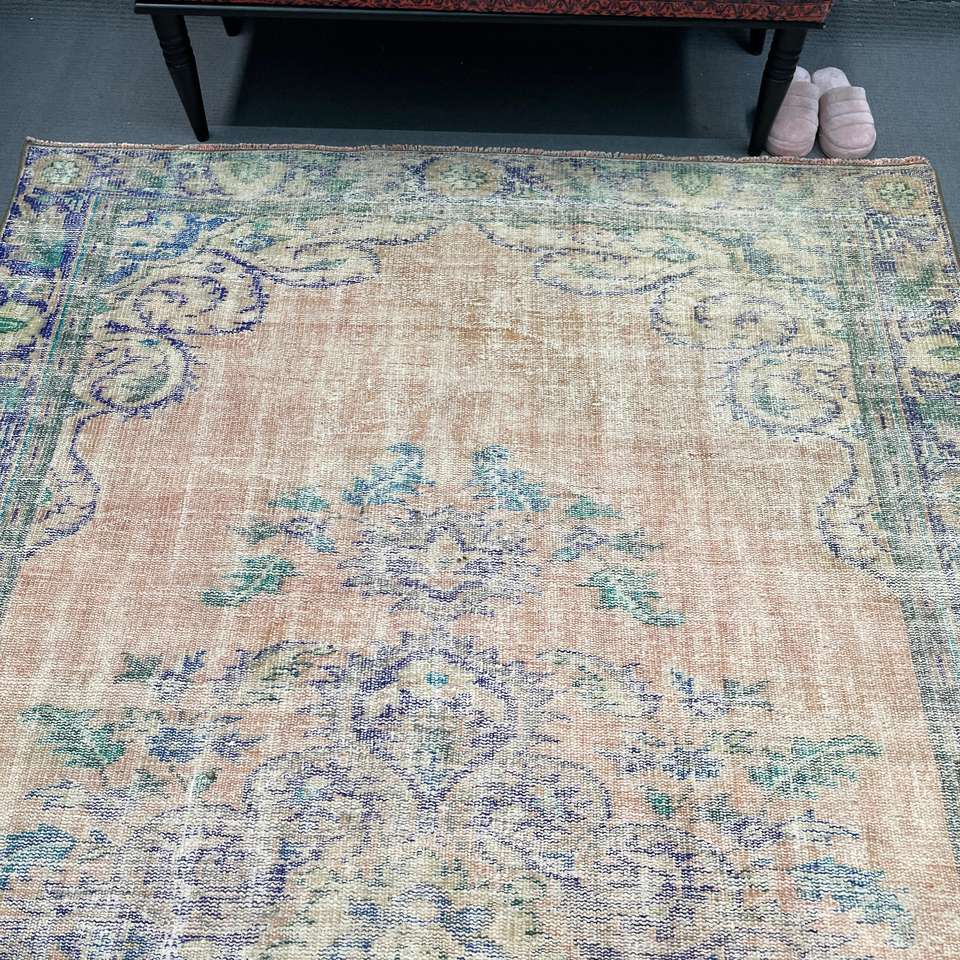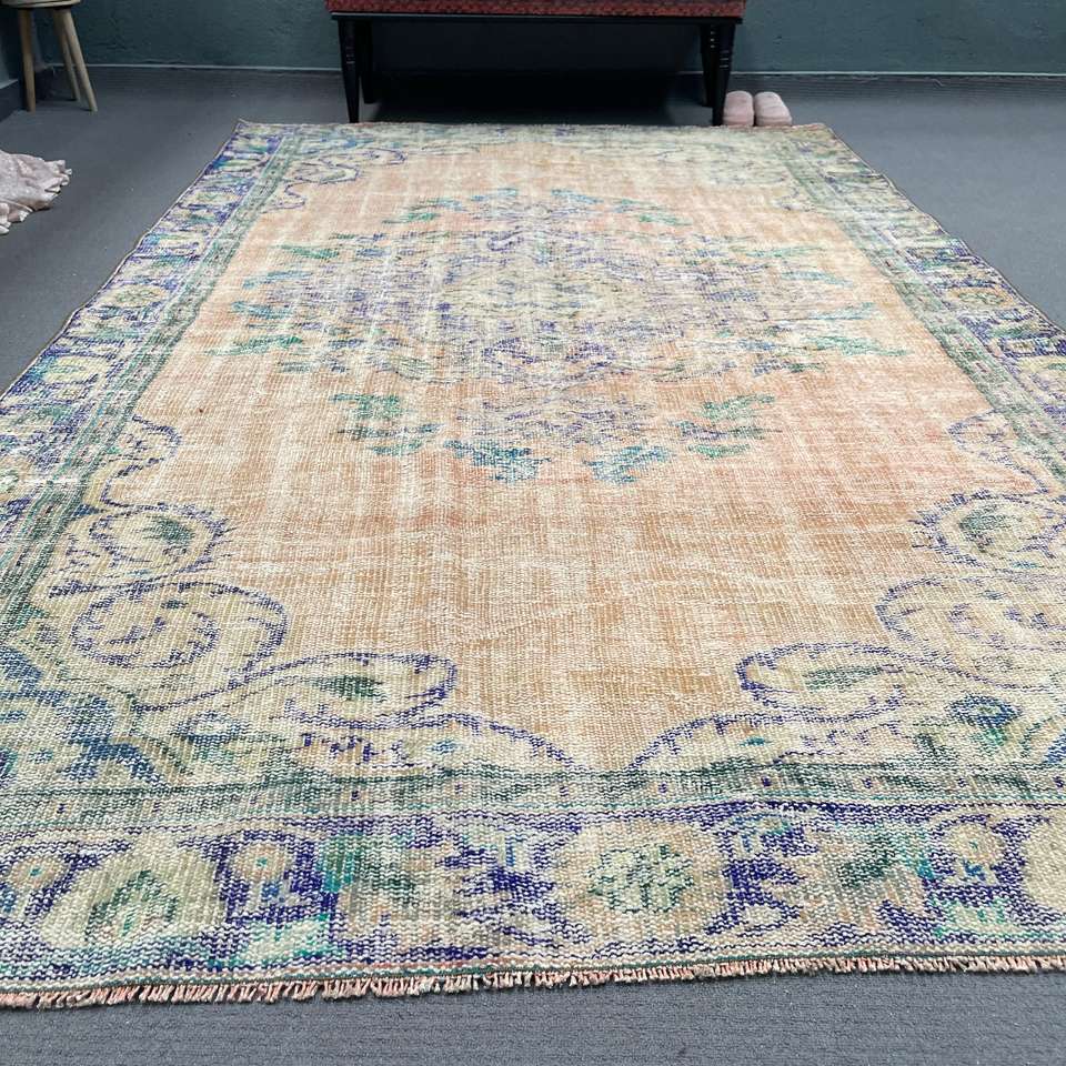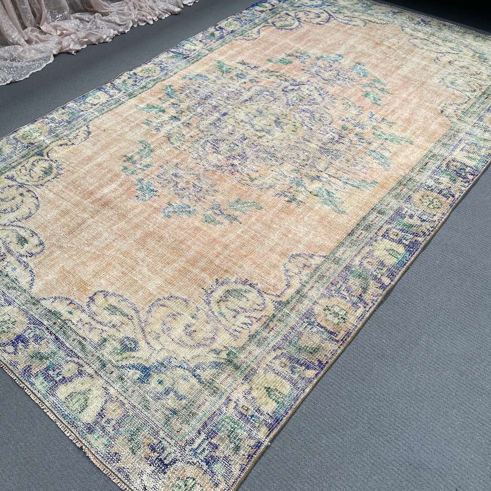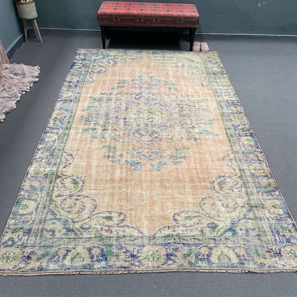 Alfombra de 5.9x9.7 pies, Alfombra Turca Vintage, Alfombra con Estampado Animal Azul Marrón