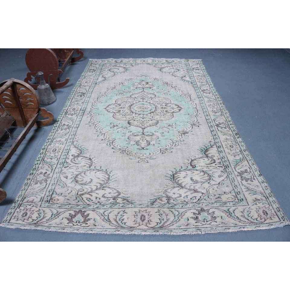 Alfombra Vintage de 5.9x9.8 pies, Alfombra Turca Grande, Alfombra Marroquí Azul Grisácea