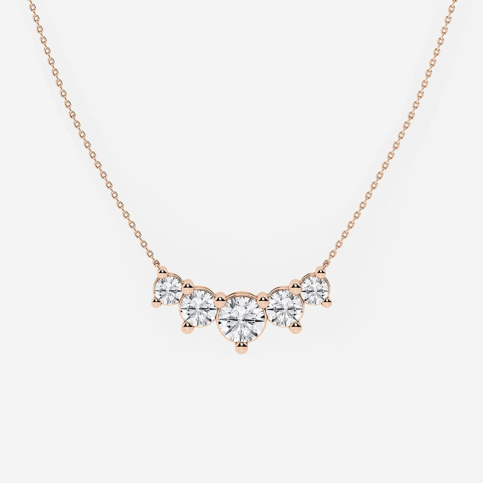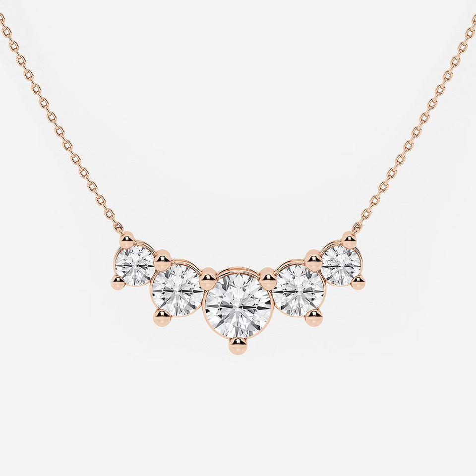 Collar de Diamantes Cultivados en Laboratorio, 5 CTW, Corte Redondo, Cinco Piedras, Estilo Demi Eternity, Joyería Elegante y Brillante para Mujer