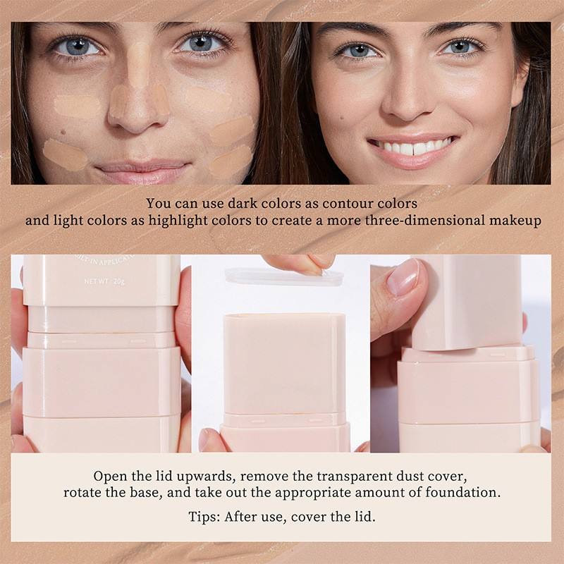 Base de Maquillaje en Barra de Cobertura Total Mate y Ligera de 5 Colores, Polvo Compacto Blanqueador para Piel Oscura, Esponja Iluminadora