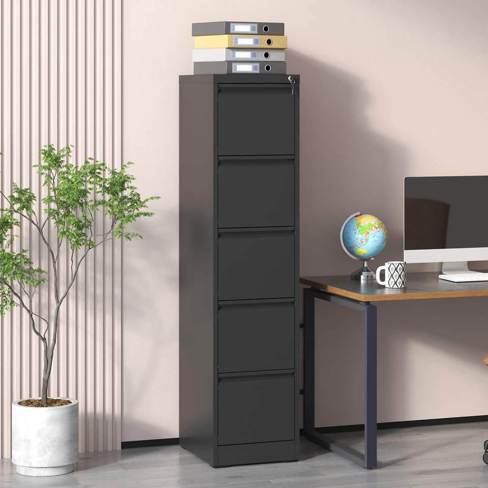 Archivador Vertical Metálico de 5 Cajones para Tamaño A4/Legal/Carta, Archivador de Acero para Oficina/Hogar con Cerradura