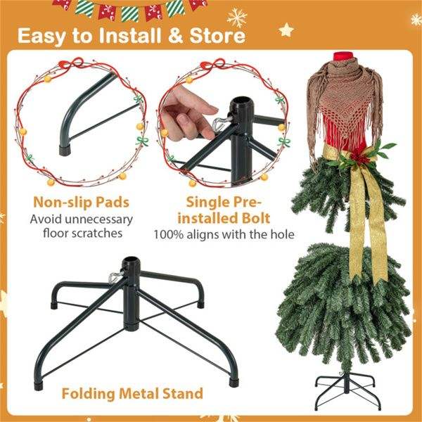 Árbol de Navidad Artificial Preiluminado de 1.5 m con Forma de Maniquí para Decoraciones Festivas