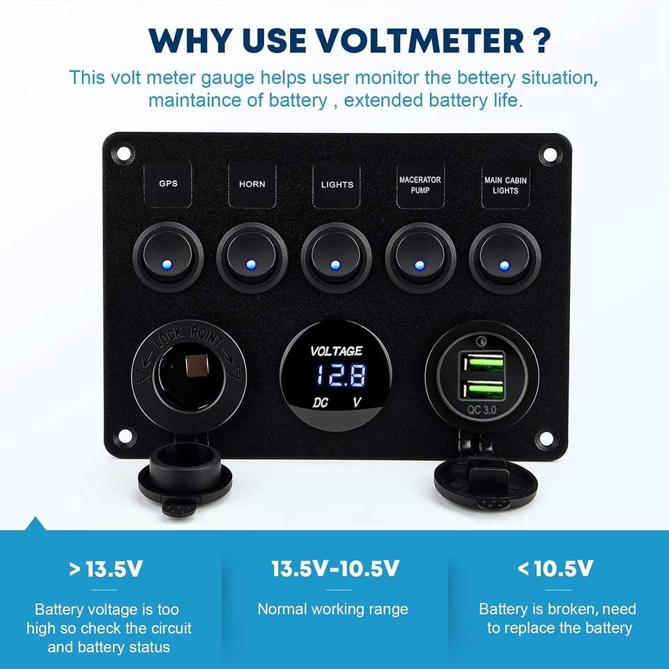 Panel de interruptor basculante de 5 entradas, 12V, 24V, voltímetro Digital impermeable, cargador USB Dual, barco marino, caravana, RV, Panel de interruptor de Control