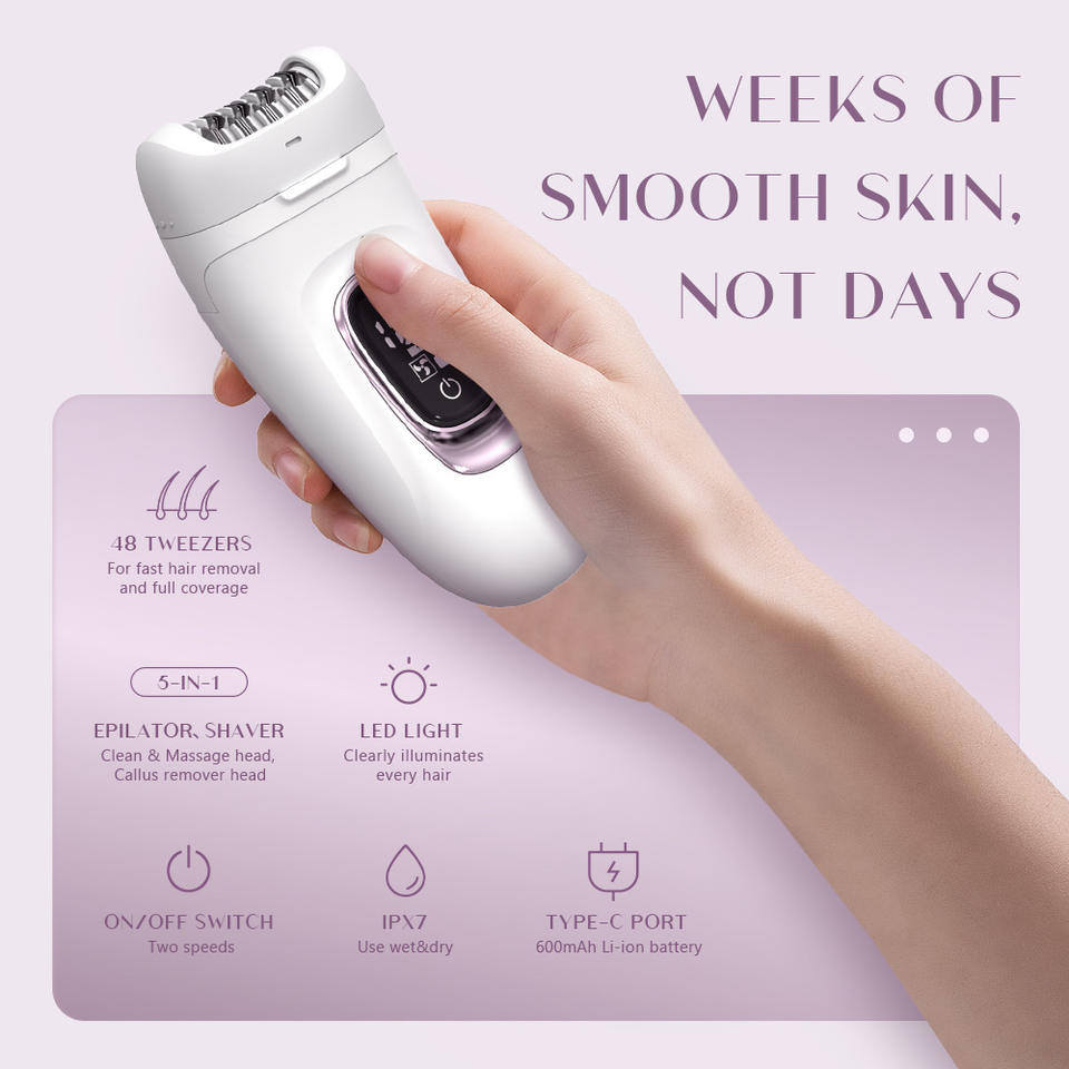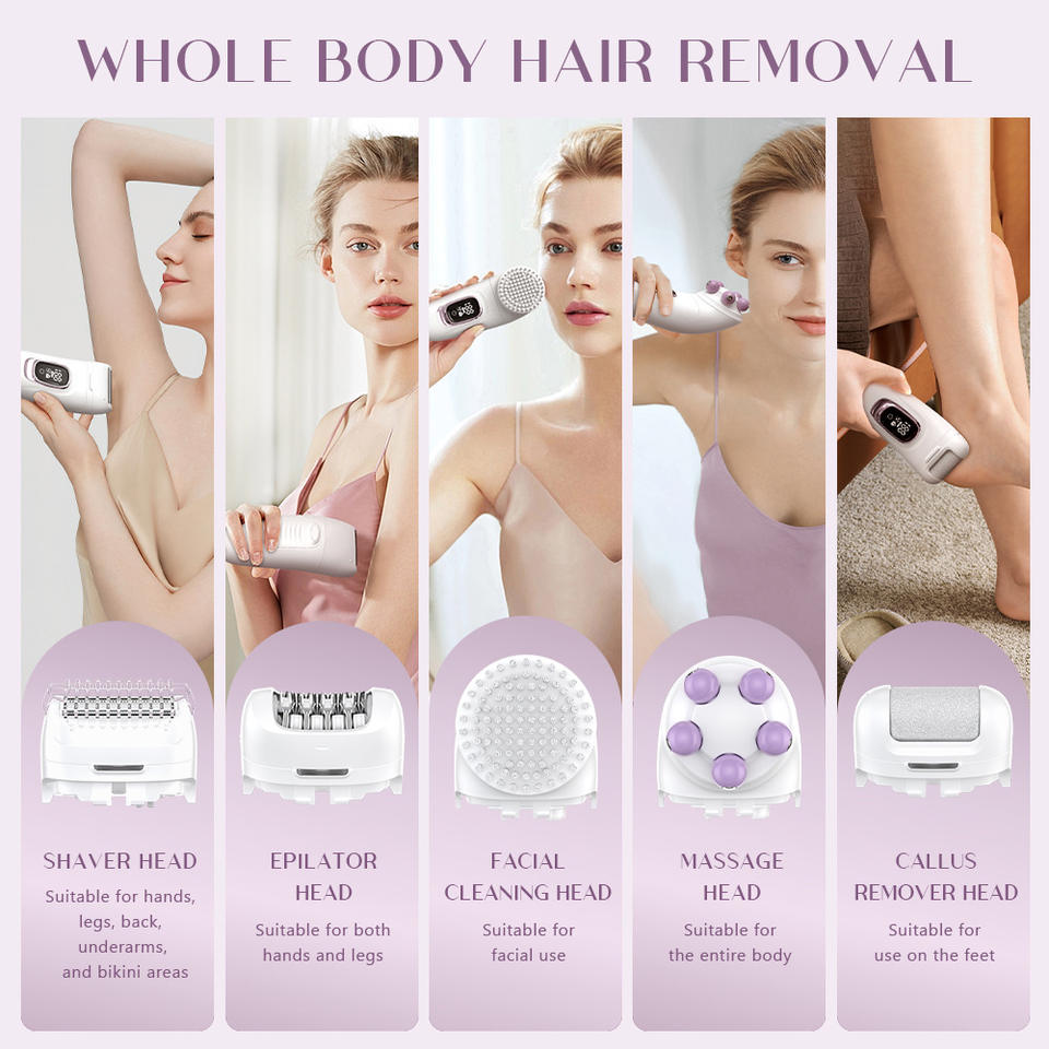 Depiladora eléctrica 5 en 1 con luz LED y puerto tipo C para mujeres, depilación de cuerpo completo, uso en seco y húmedo