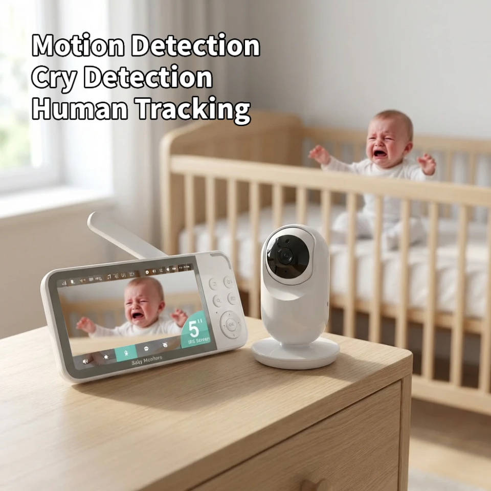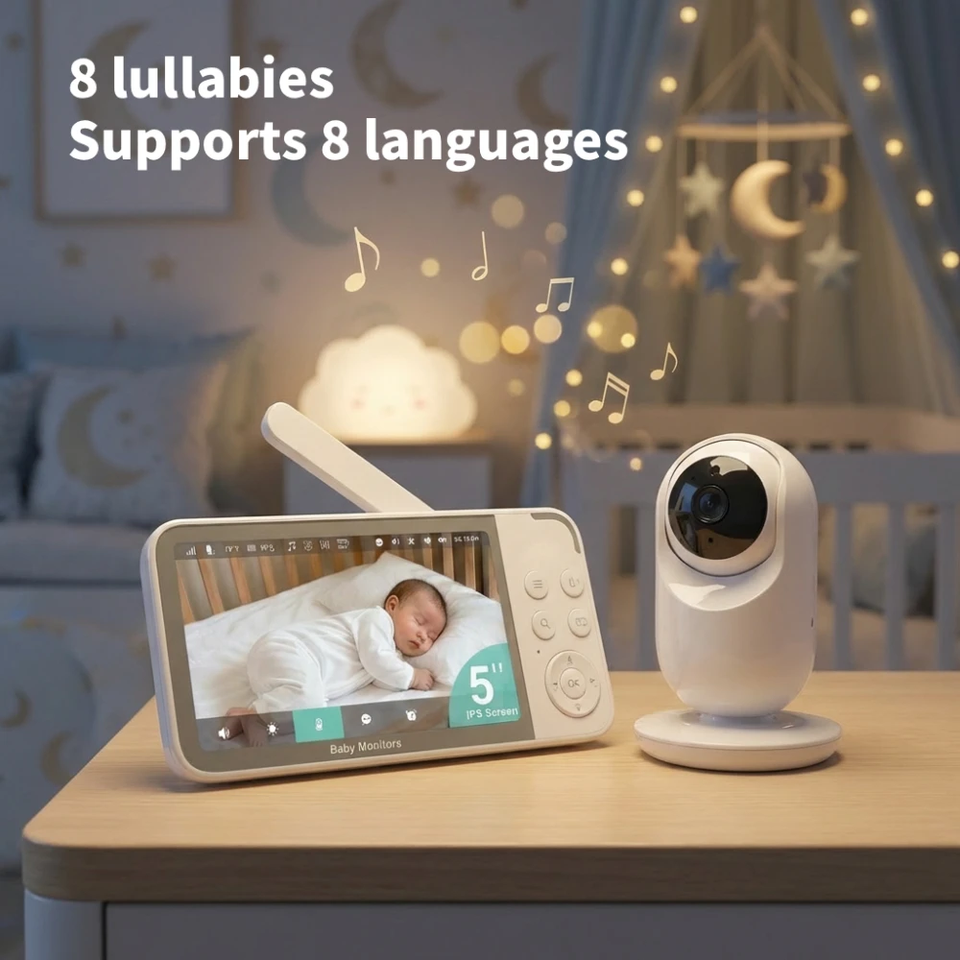 Monitor para Bebés de 5 Pulgadas con Doble Modo WiFi 2.4GHz FHSS, Video HD 720P, Visión Nocturna, Audio Bidireccional, Sirena Integrada y Detección de Movimiento