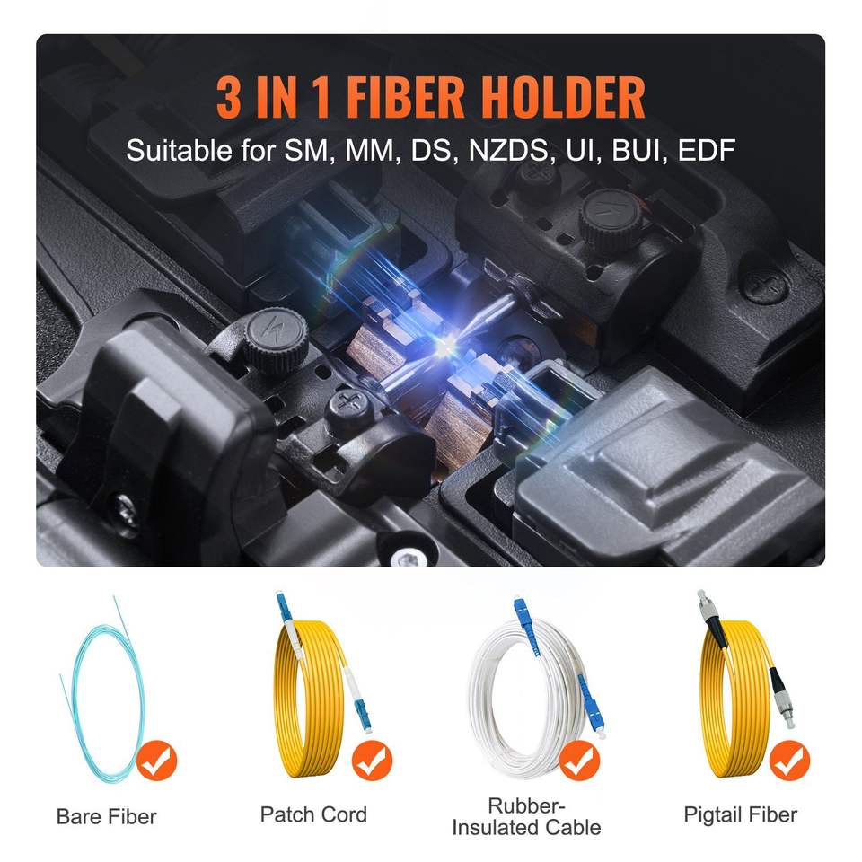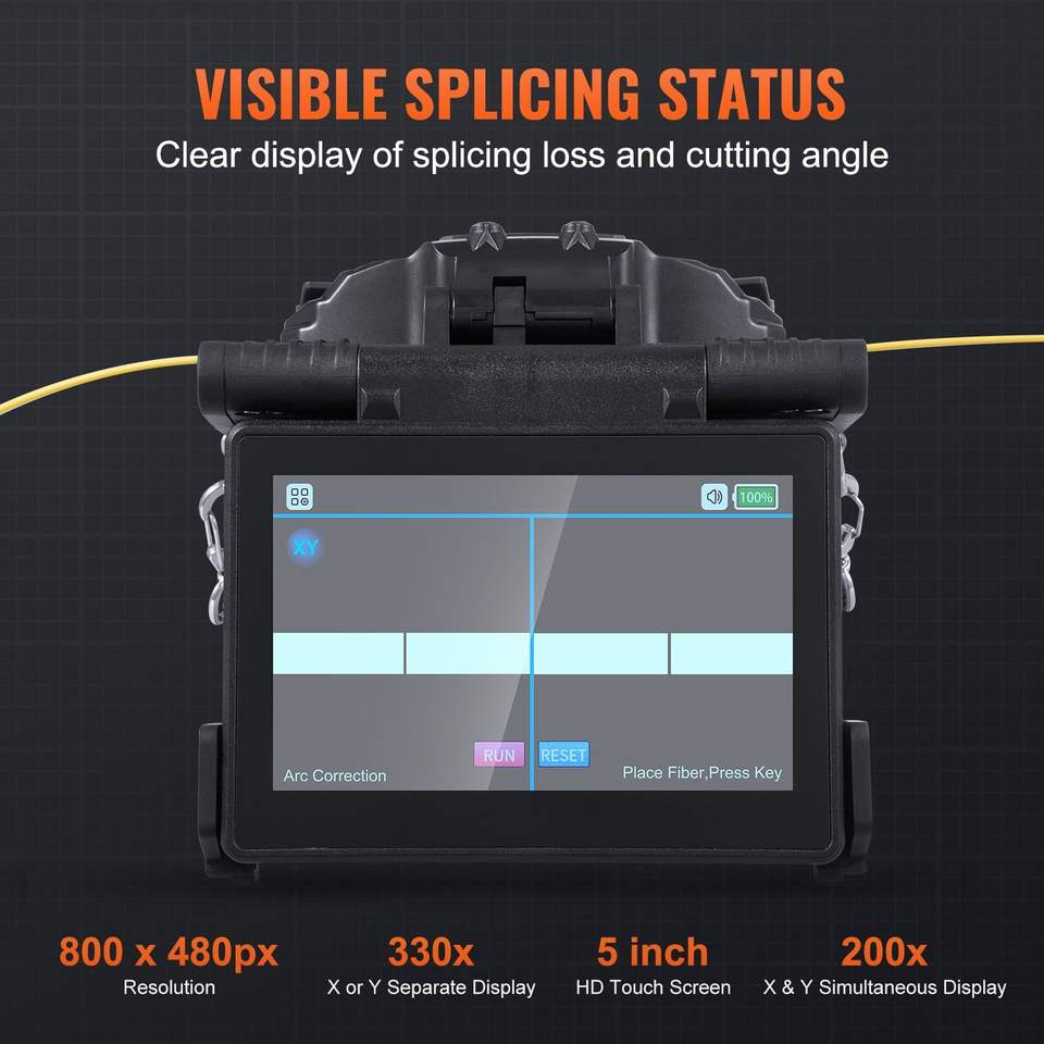 Máquina de Empalme de Fibra Óptica de 5 Pulgadas con 4 Motores, Empalmadora de Fusión de Fibra con Alineación de Clad de 6S y Calentamiento de 13S, Equipo Óptico