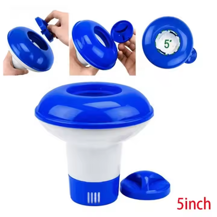 Dispensador flotante de tabletas de cloro de 5 pulgadas para piscinas, spa, bañeras de hidromasaje con tapa de control de dosificación ajustable