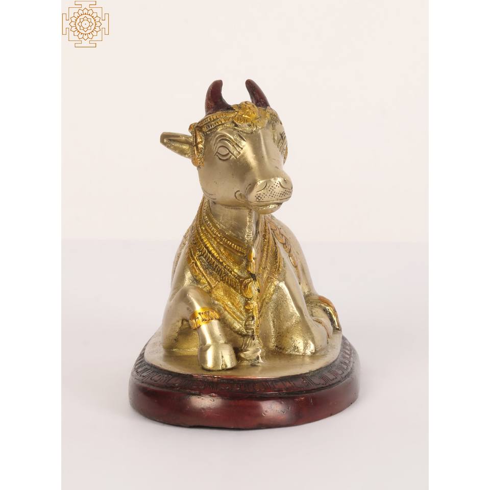 Estatua de latón decorada pequeña hecha a mano de 5 pulgadas de Nandi Vahana del Señor Shiva para decoración del hogar, templo y regalos hechos en la India