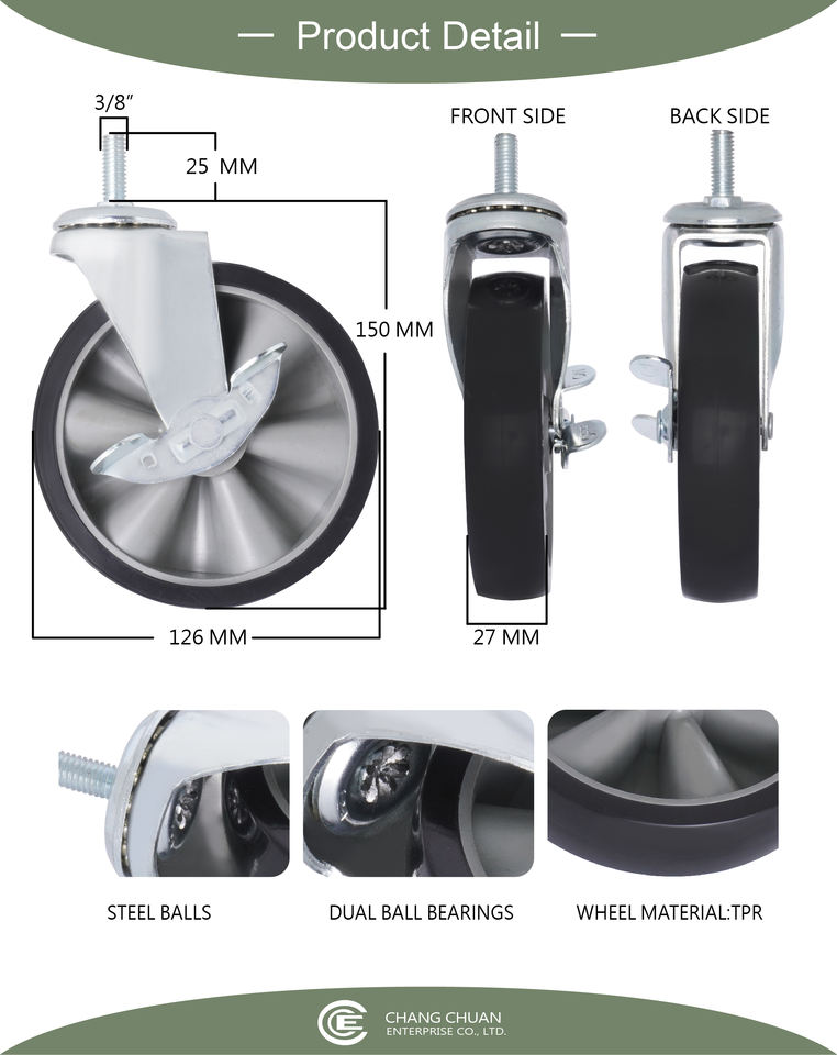126mm ( 5 PULGADAS)Dia DE LA RUEDA
