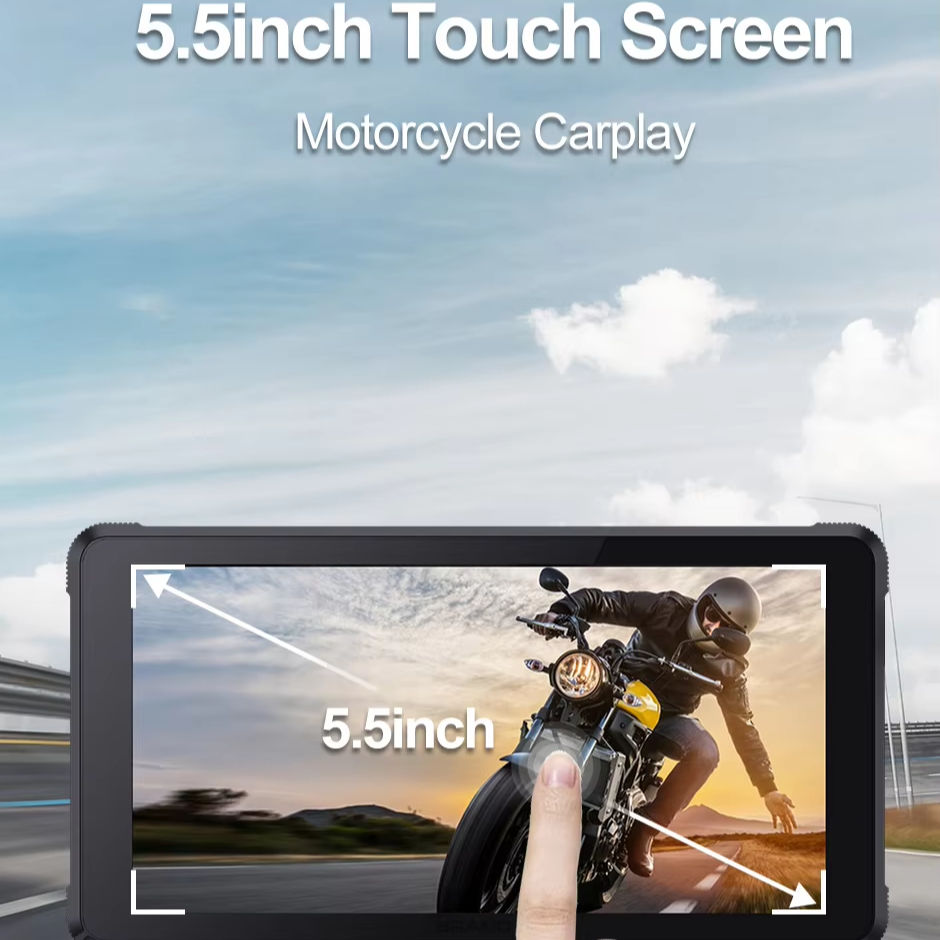 Pantalla Portátil Carplay de 5 Pulgadas para Motocicleta, Apple y Android Auto Inalámbricos, GPS Impermeable, Control por Voz, BT, WIFI, Control por Cable