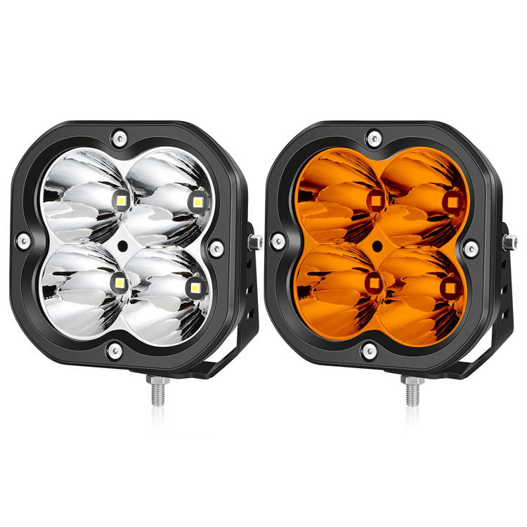 Barra de toro Flexible de Color blanco ámbar cuadrado de 5 pulgadas, montaje en parrilla, zanja, Super Spot, luz Led de trabajo de conducción para automóviles