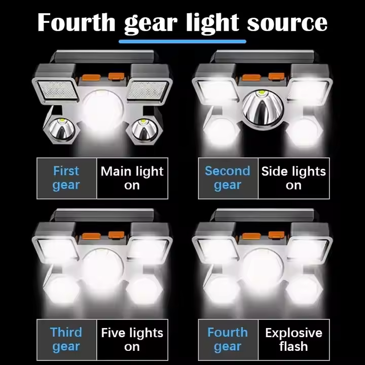 Linterna LED de 5 Leds Recargable con Batería Integrada 18650, Luz Potente para Camping, Aventura, Pesca, Linterna Frontal
