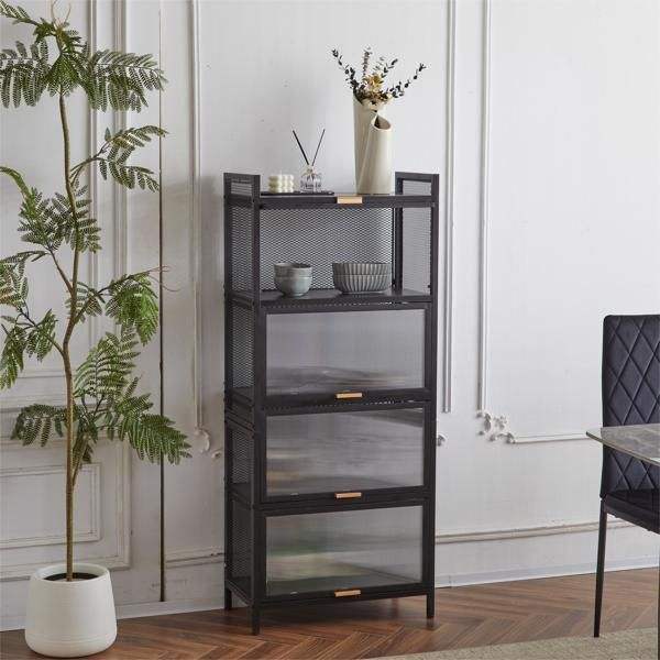 Mueble de Almacenamiento Multifuncional de 5 Niveles para Sala de Estar con Estante para Pan y Microondas, Solución de Almacenamiento para Despensa