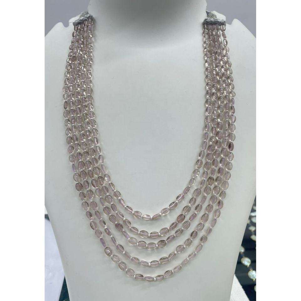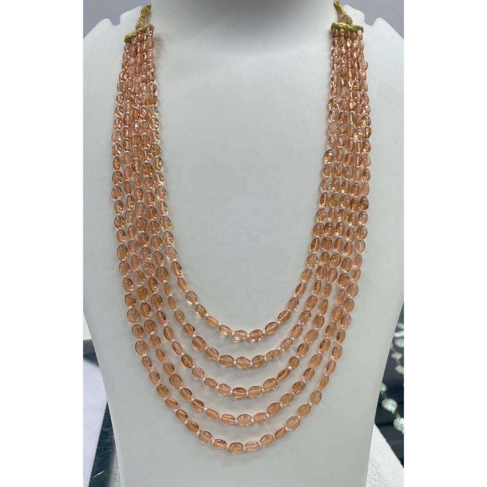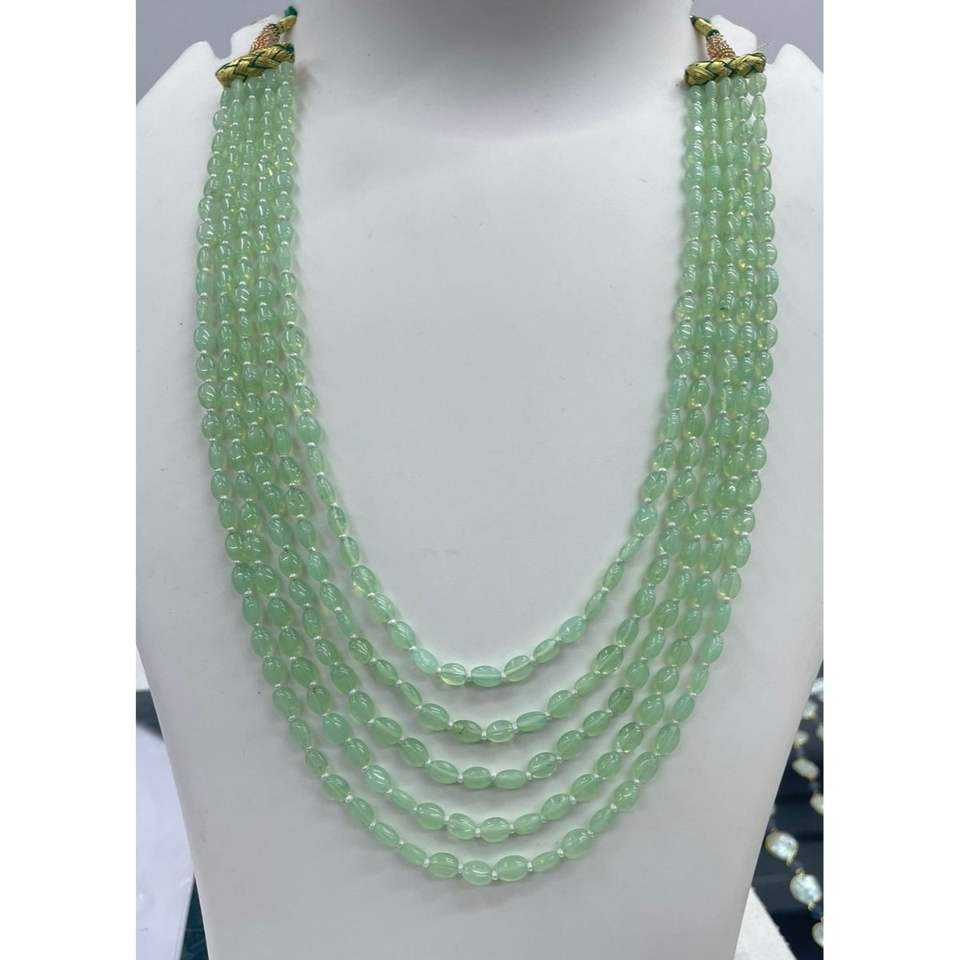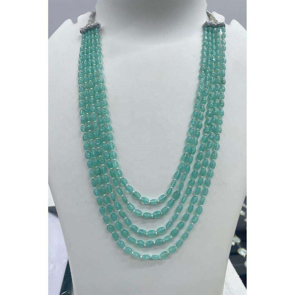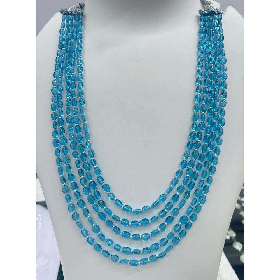Collar de Cuentas de Piedra de Jade Aguamarina Real de 5 Capas Multicolor, Collar de Varias Hebras de Piedra Natural de Alta Calidad Encerada/Aceitada
