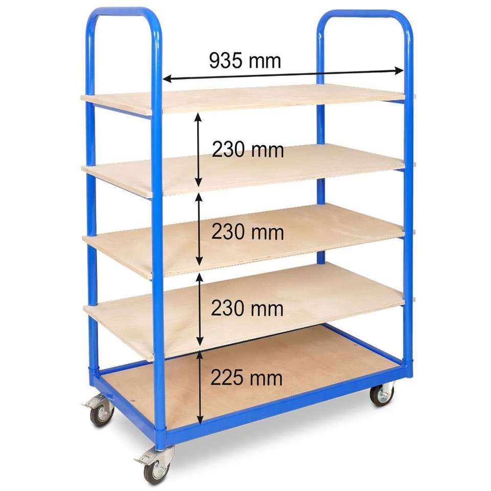 Etagenwagen de 5 niveles con 10 Euroboxen 1050x500x1450mm 2 lenks (con freno de estacionamiento) y 2 rodillos de eje Carritos y carros de la compra