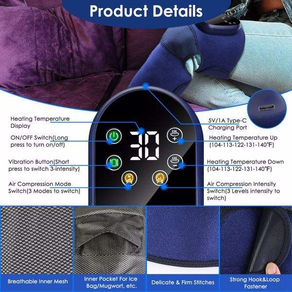 Masajeador Eléctrico Inalámbrico para Rodilla con 5 Niveles de Calor, 3 Niveles de Vibración y 3 Modos, Rodillera Térmica con 3 Niveles de Vibración