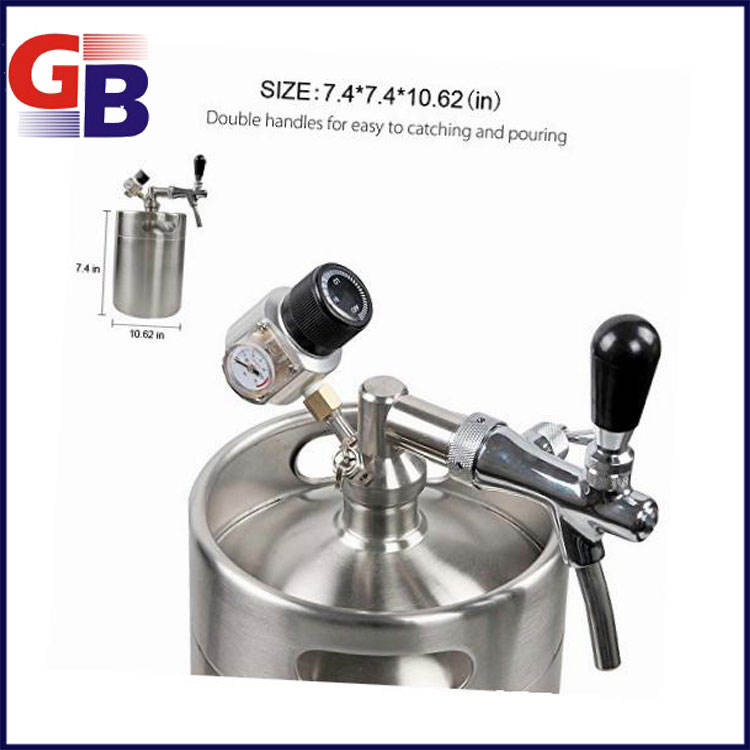 Mini dispensador de barril Growler casero de 5 litros con grifo y regulador de CO2