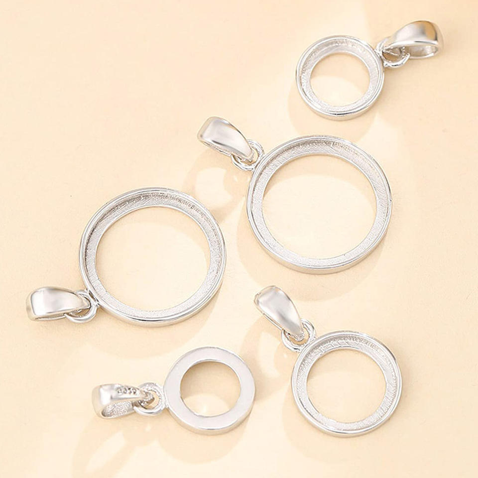 Colgante de plata de ley 925 con forma redonda, accesorio de joyería de ajuste en blanco con bisel de 5 MM