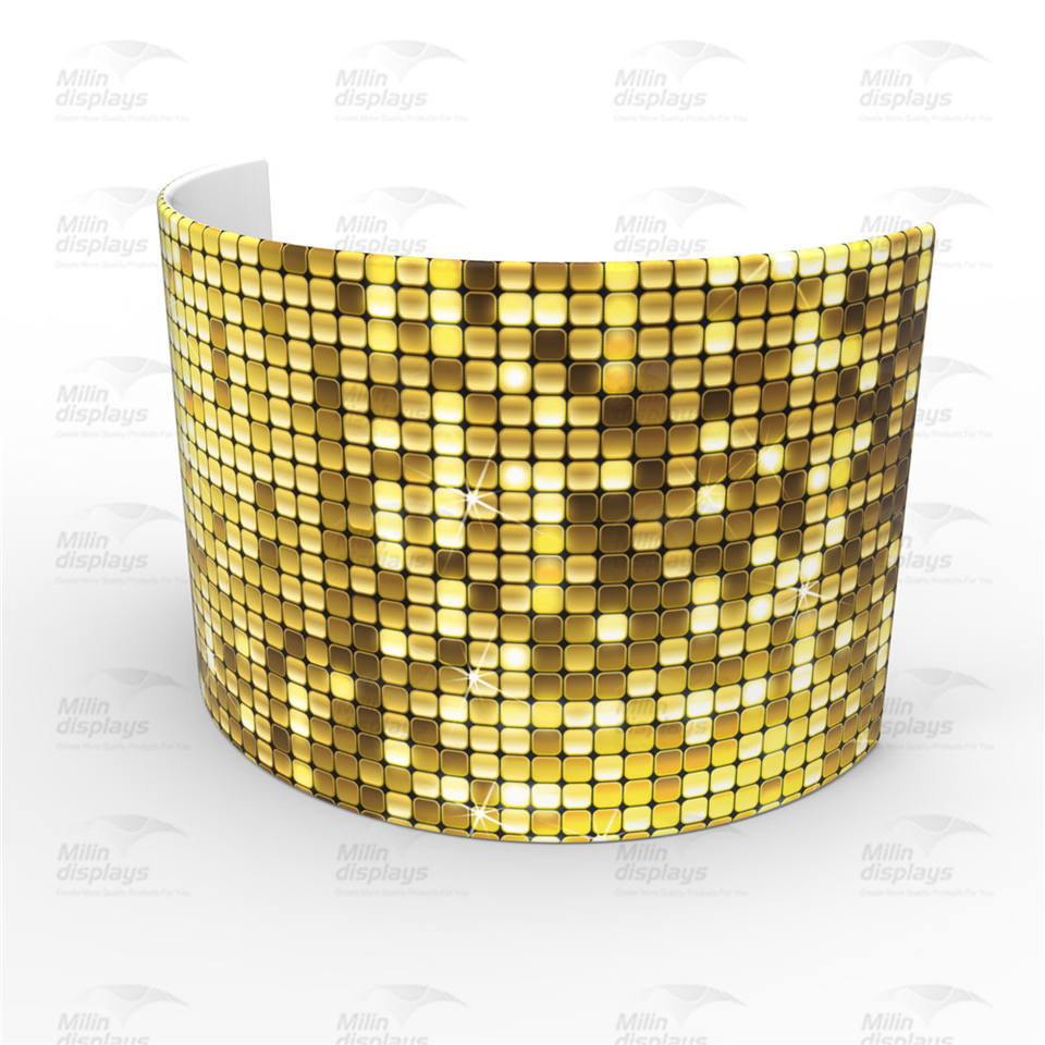 Cabina de fachada de DJ para eventos, diseño de brillos dorados y plateados de instalación rápida en 5 minutos