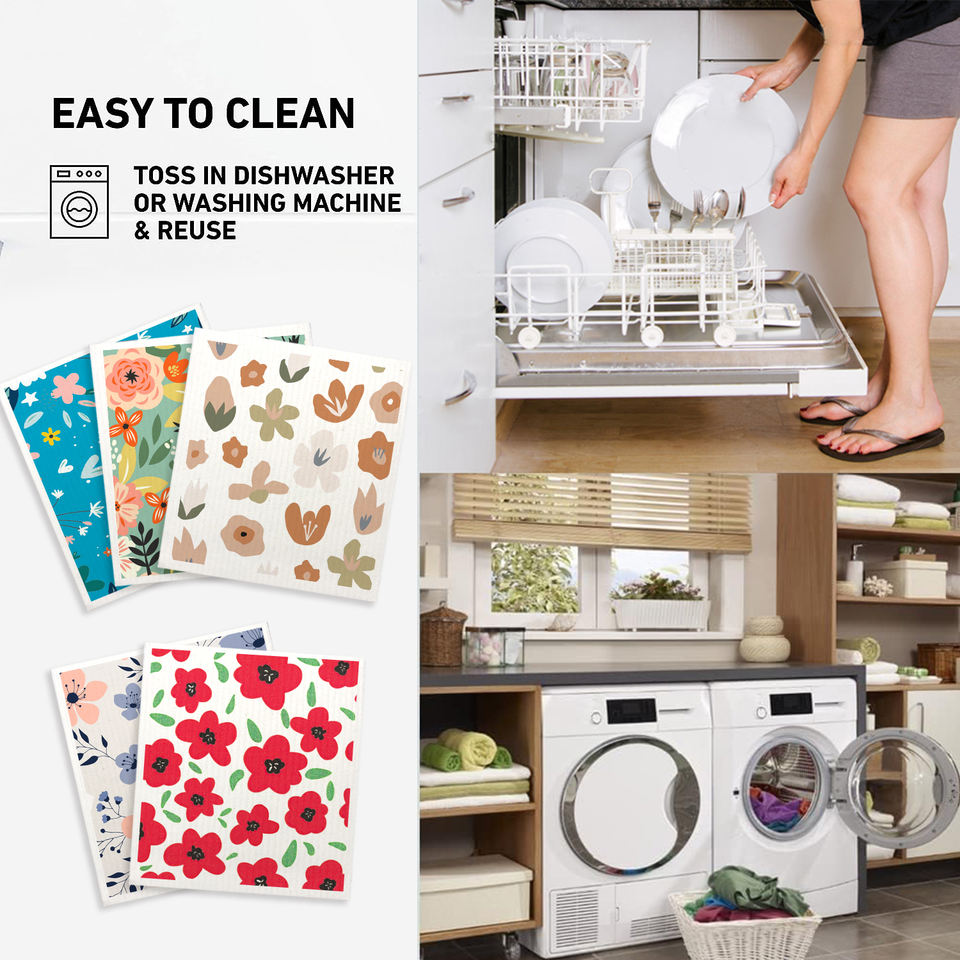 Paquete de 5, nuevo Kit de diseño, paño de cocina sueco Carson para cocina, paño de esponja de toalla de celulosa de algodón reutilizable ecológico