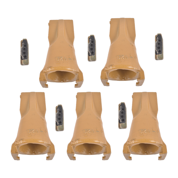 Paquete de 5 Dientes de Repuesto Amarillos Tipo V V23SYL con Pasadores Flexibles V23PN para Retroexcavadora y Grúa