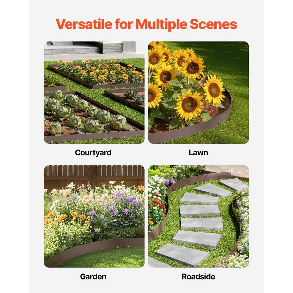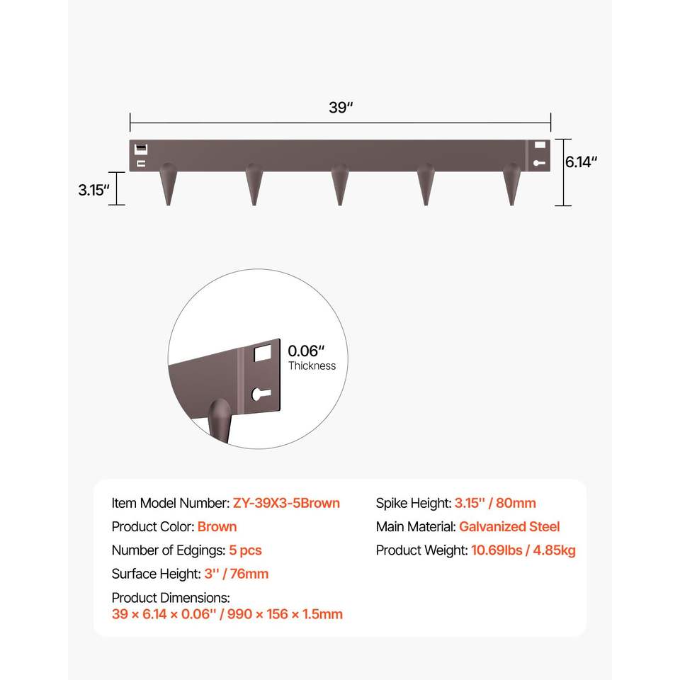 5 Paquetes de 39 x 3 Pulgadas, Borde de Jardín de Acero Resistente a la Corrosión, Borde de Jardín Metálico Galvanizado Flexible para Césped y Jardín