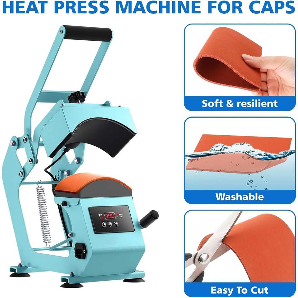5 Almohadillas de Silicona de 8 x 4 Pulgadas Resistentes al Calor para Planchado HTV, Tapete para Transferencia de Calor en Gorras, Accesorio para Máquina de Prensa de Calor